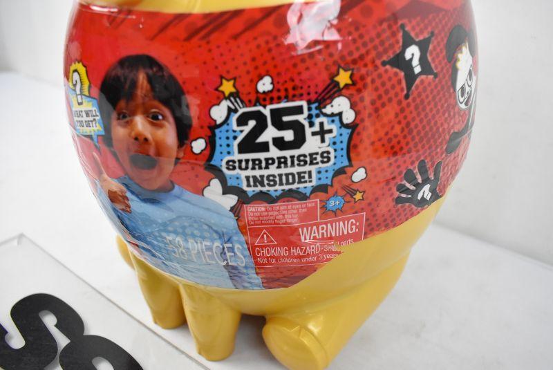 Ryan's World Deluxe Piggy Bank. Open. 28 unopened toys