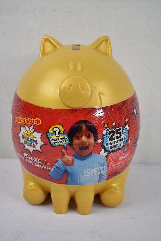 Ryan's World Deluxe Piggy Bank w/ 25+ Surprises inside. Sealed, $30 Retail - New