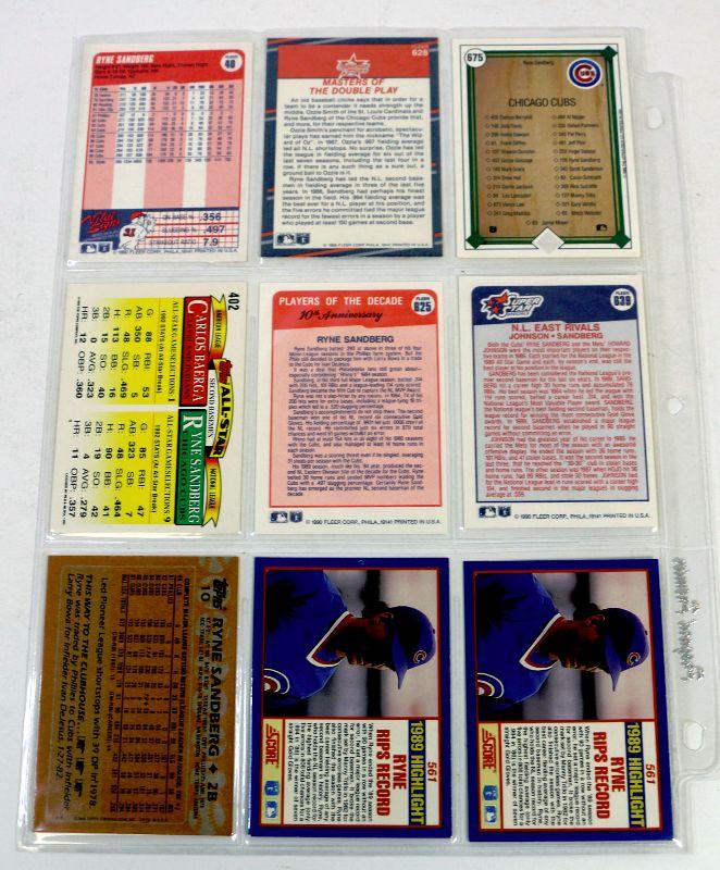 Nice set of 9 Baseball Cards featuring Baseball Star RYNE SANDBERG