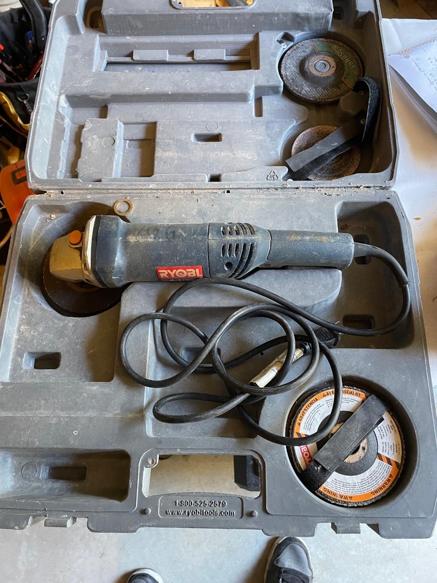 Ryobi AG451 Angle Grinder with Discs and Case. Good Condition!