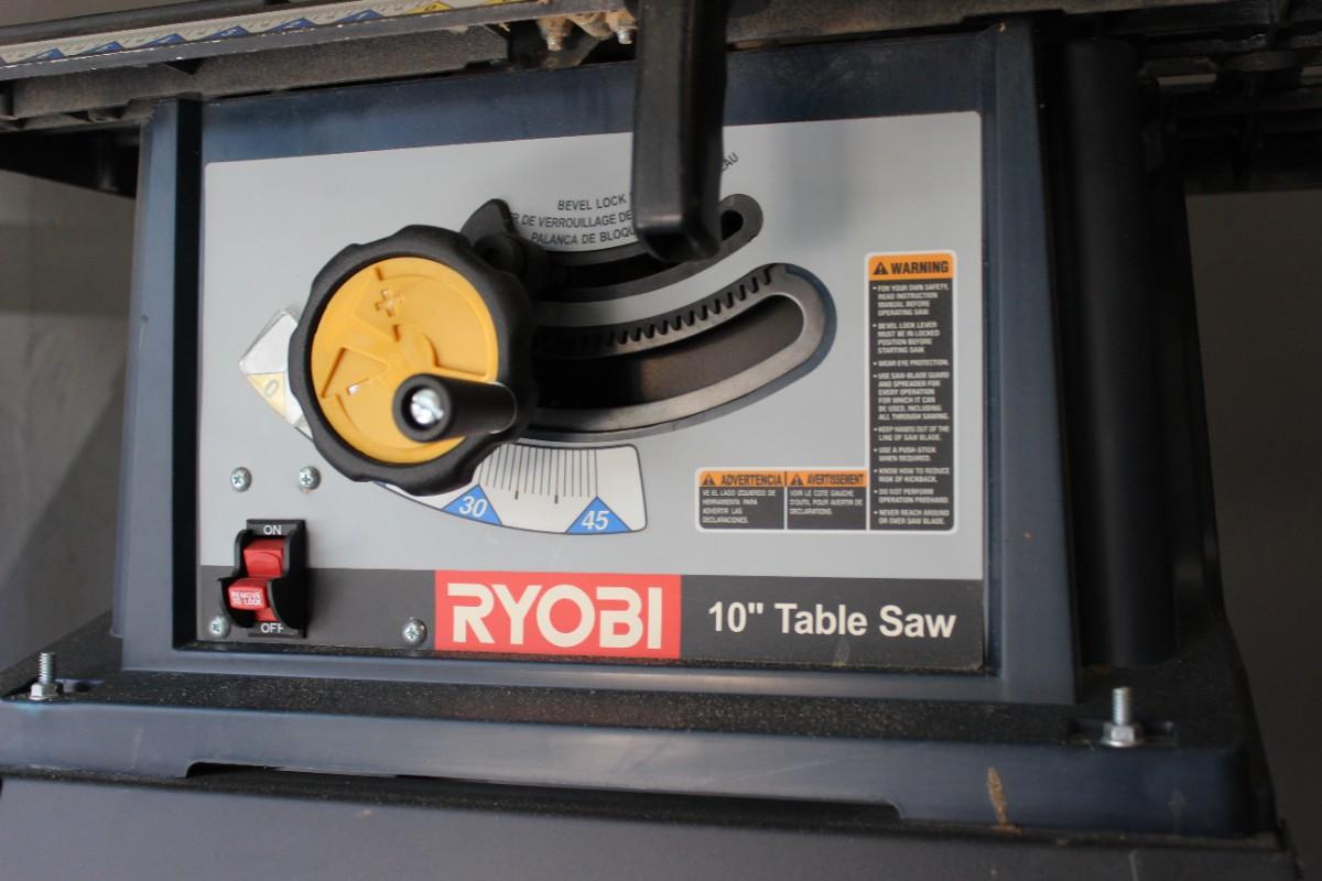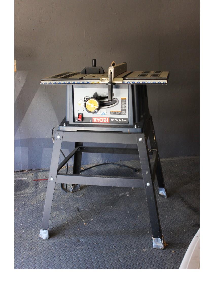 Ryobi 10" Table Saw, there is no damage to the table saw and is in good condition. Has not been tested, check pictures for more details and for sizing. THIS AUCTION IS LOCAL PICK UP ONLY IN ANGELUS OAKS, CA. PICK UP WILL BE ON NOVEMBER 13TH FROM 10AM TO 1PM.