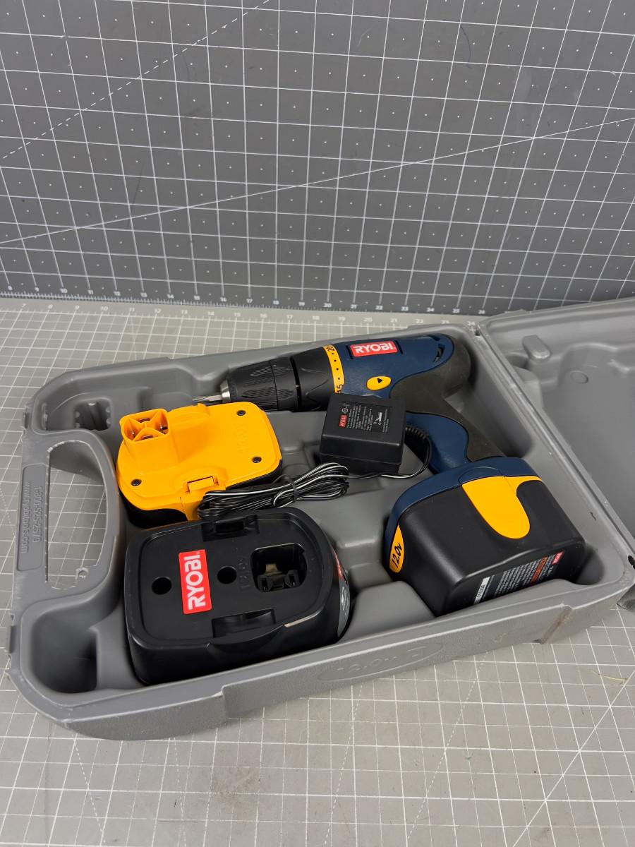RYOBI 12 Volt Cordless Drill with Hard Case, Battery and Changer
