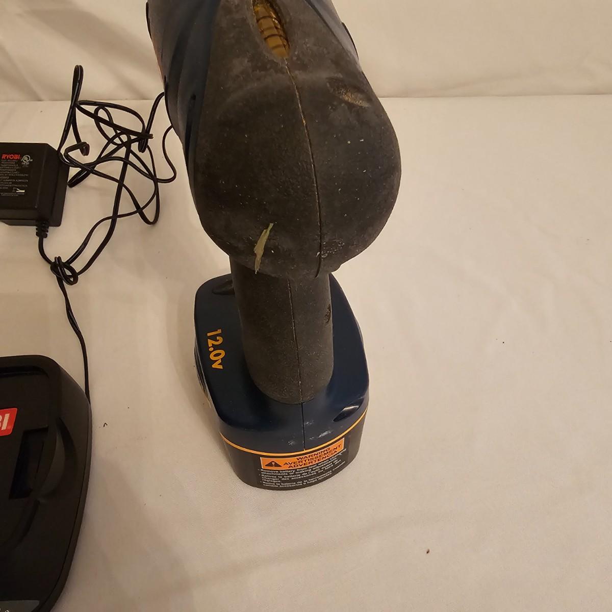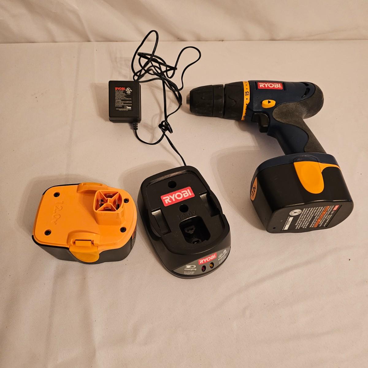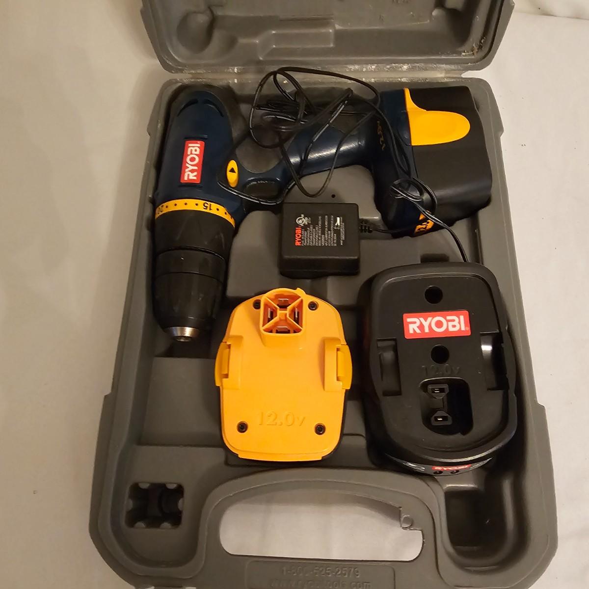 Ryobi 3/8" cordless drill with hardshell case, two batteries and charger. Drill powered on when plugged in. See photos for details. Shipping available.