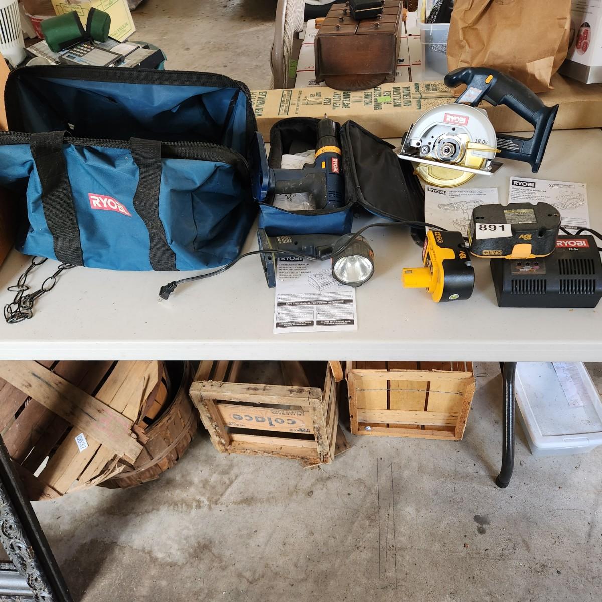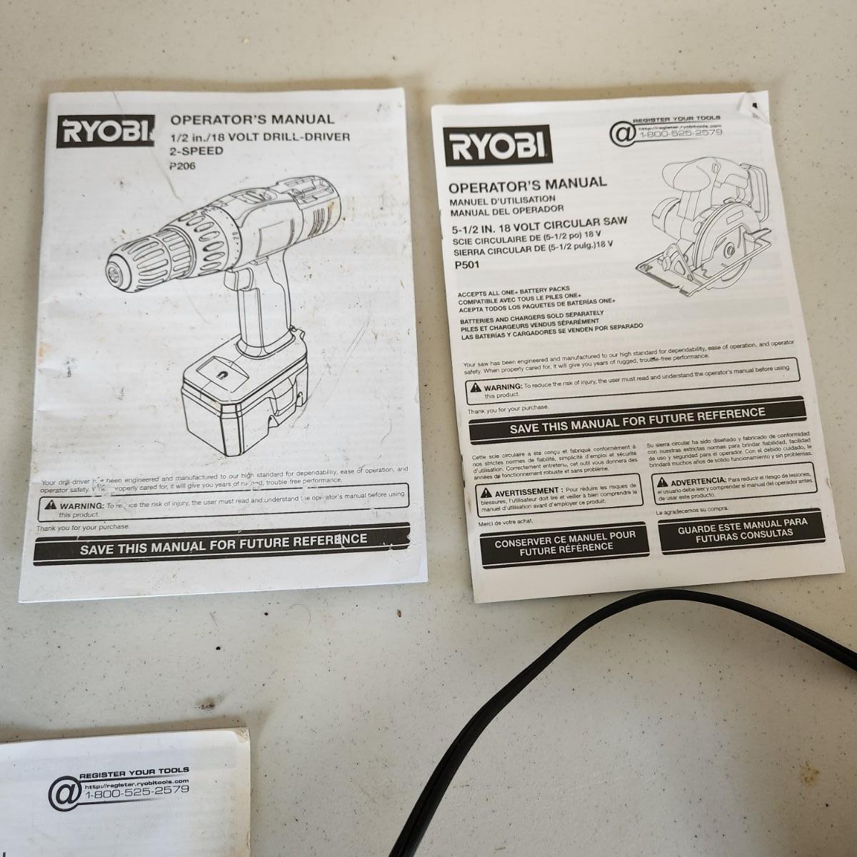 Ryobi 18V Tools lot includes battery charger bag Drill Saw & Light Tested