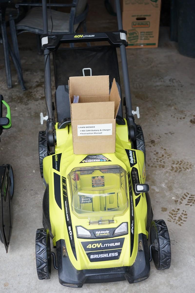 RYOBI 40V BATTERY OPERATED LAWN MOWER= EXCELLENT