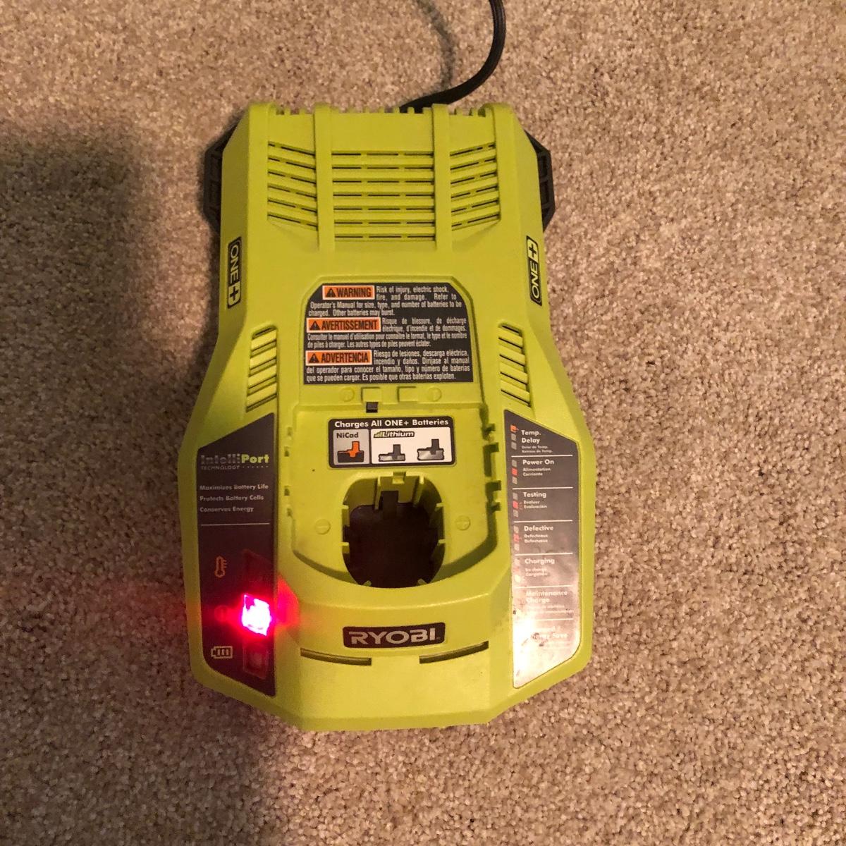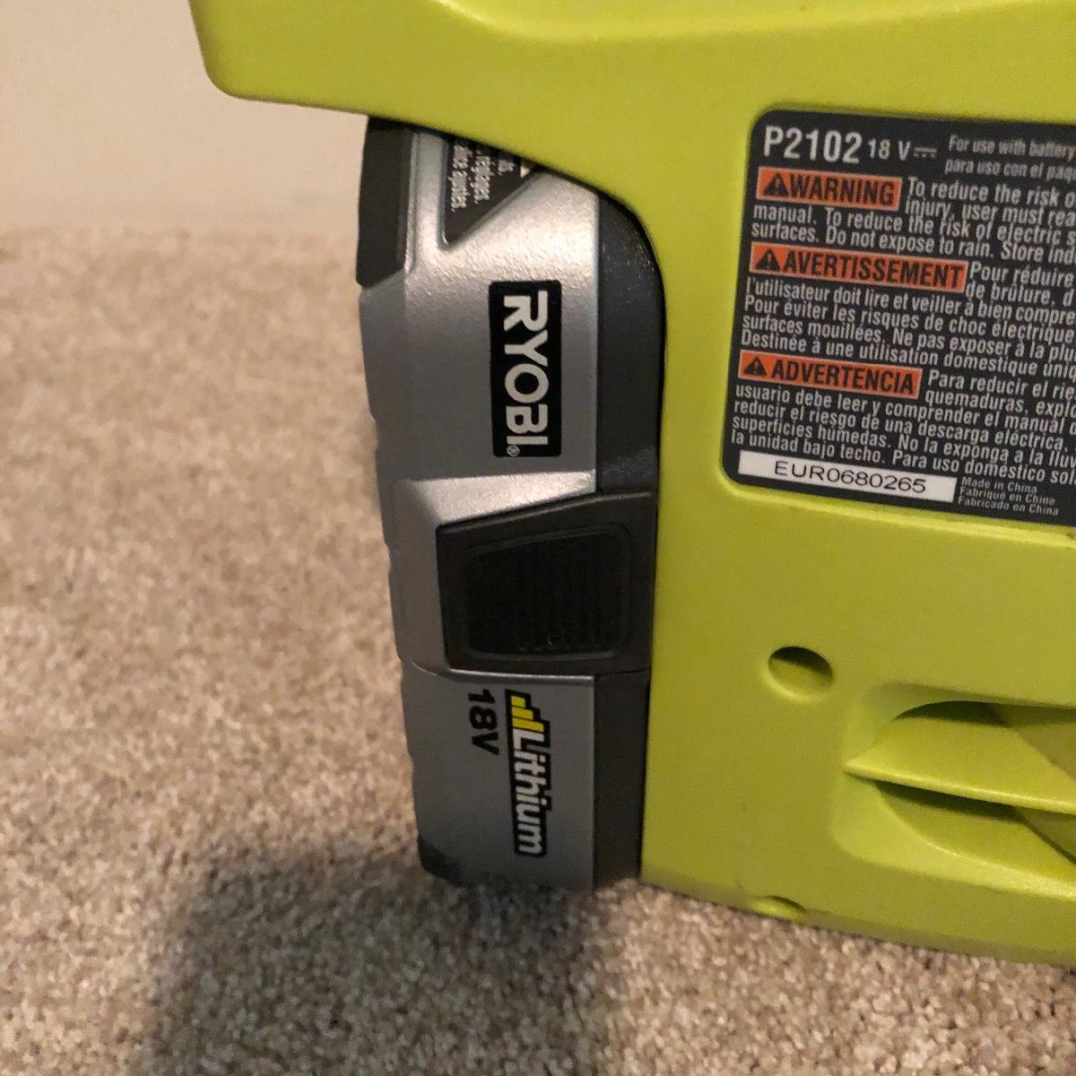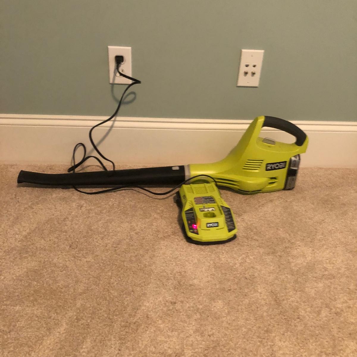 Lot includes a Ryobi cordless blower with charger and 18V lithium battery. Battery and charger worked when tested.