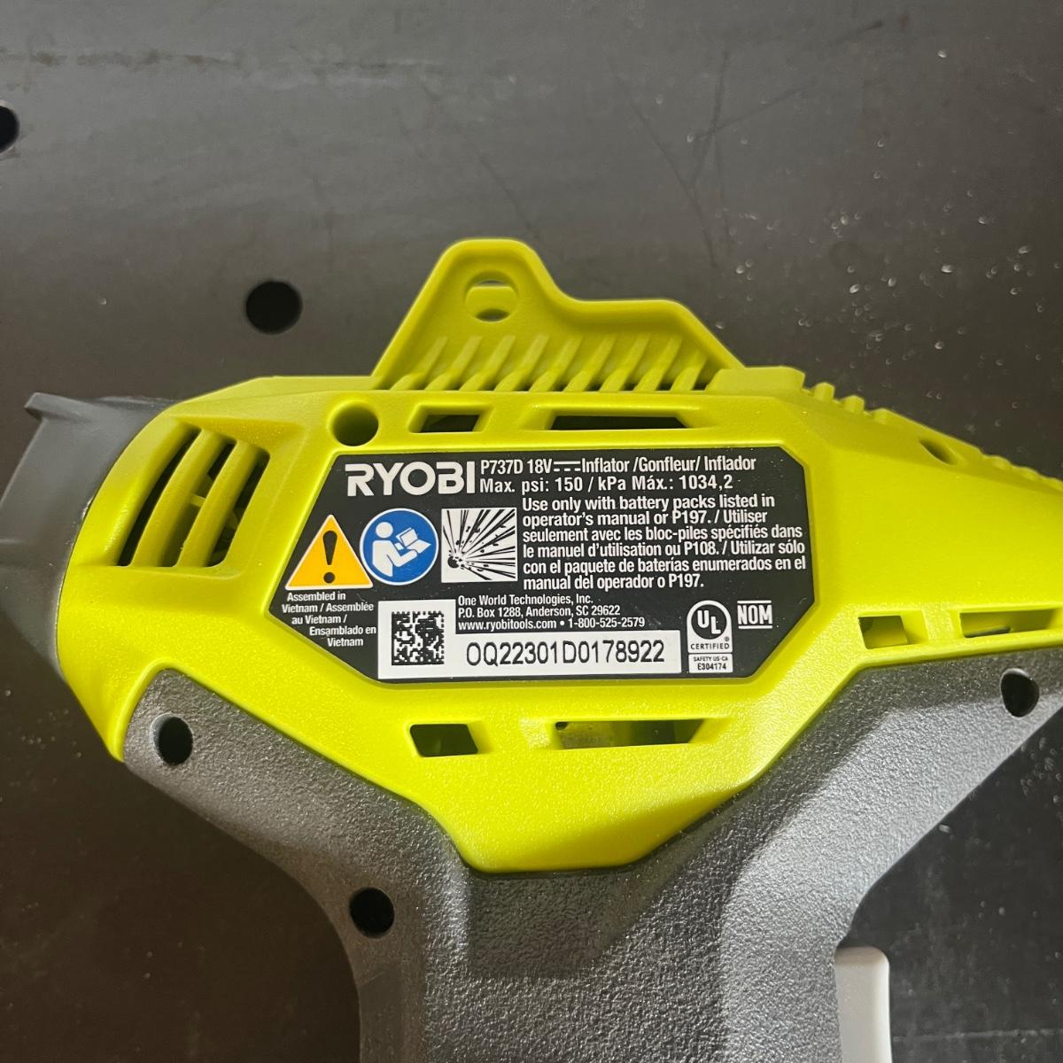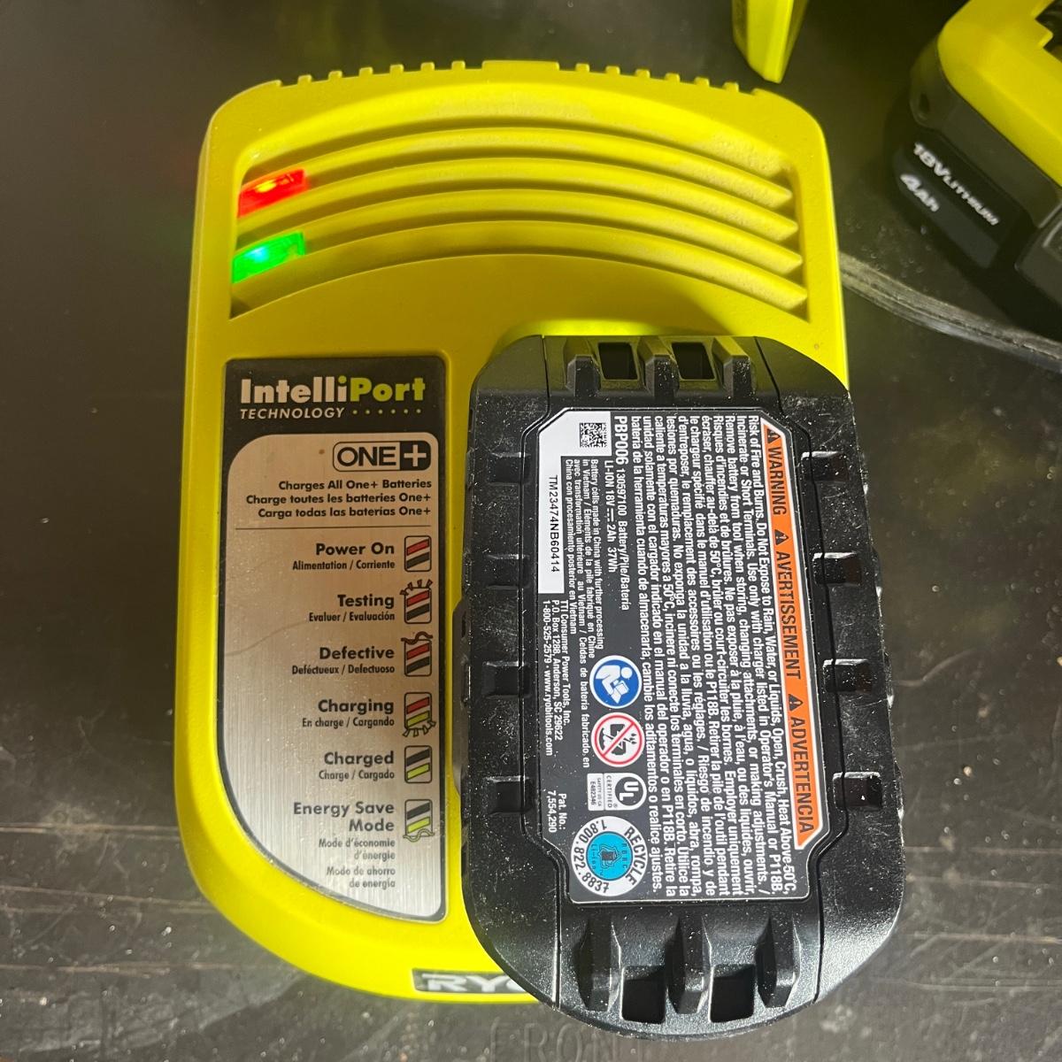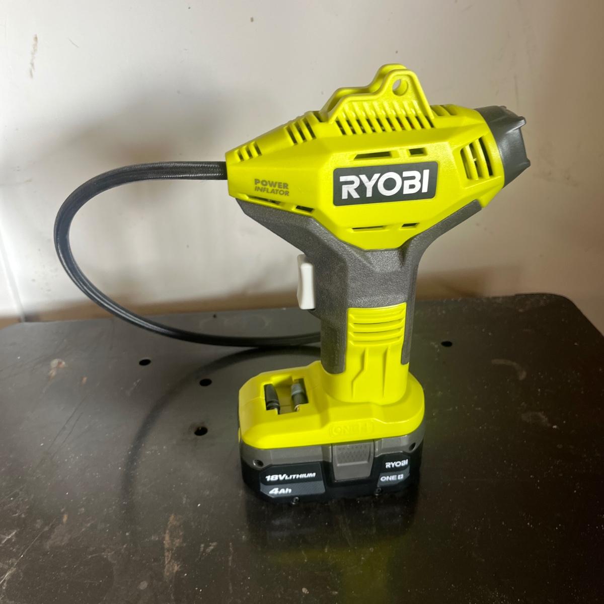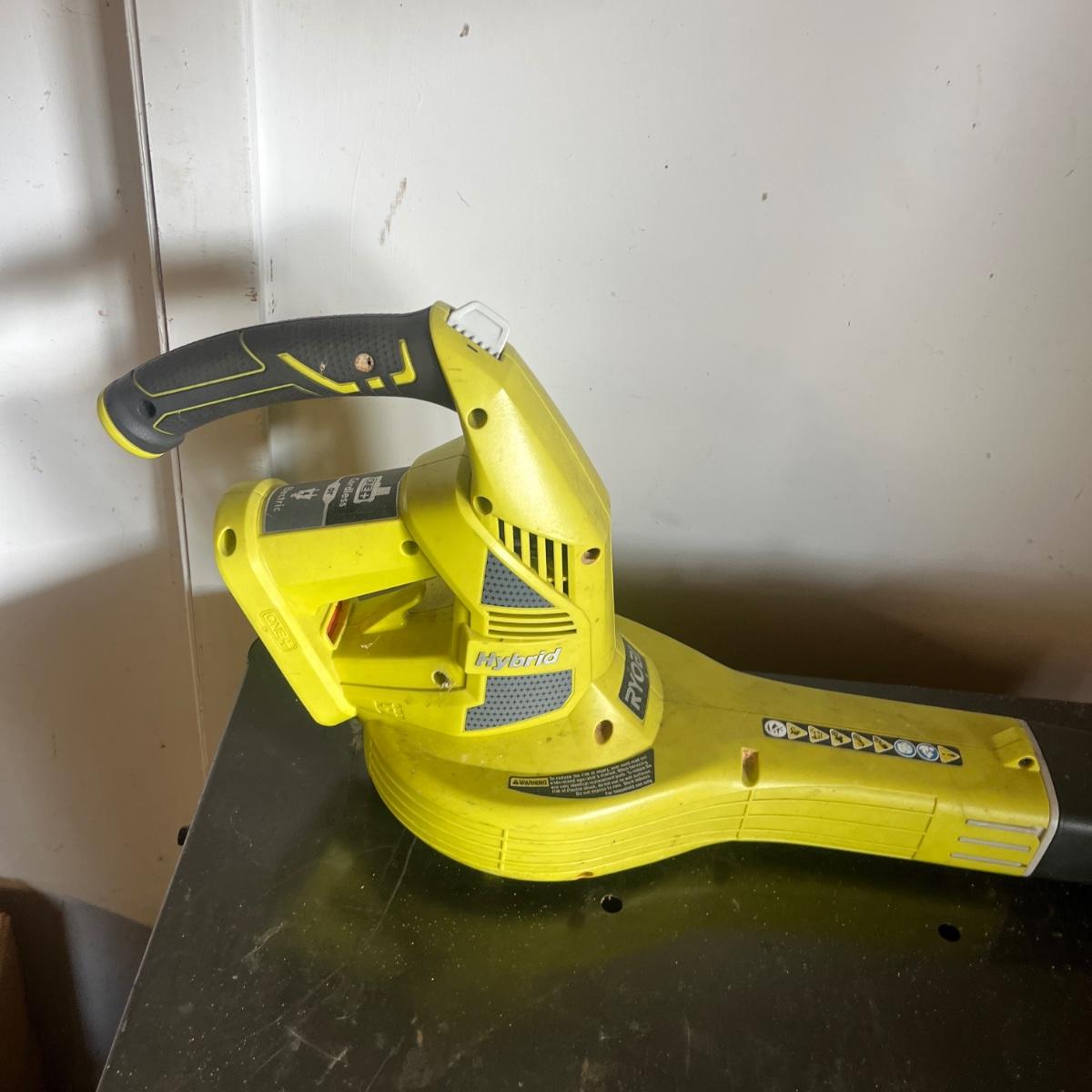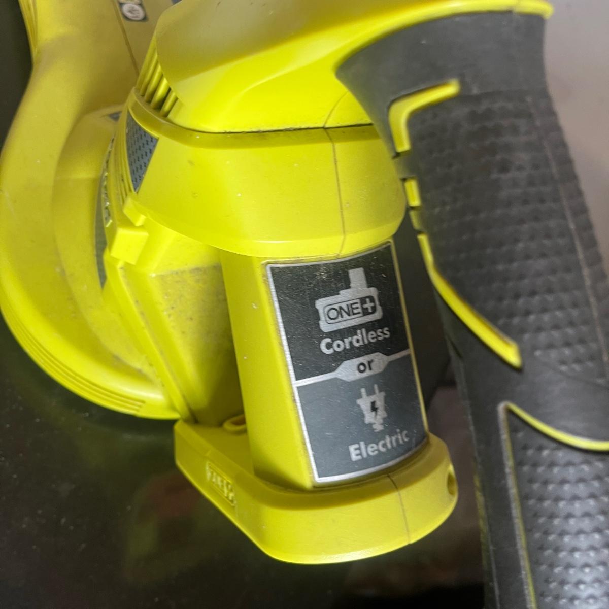 Lot contains a collection of Ryobi 18v tools that includes charger two batteries, blower, inflator and a vibrating saw. Also includes owners manuals. All items powered on when battery was installed.