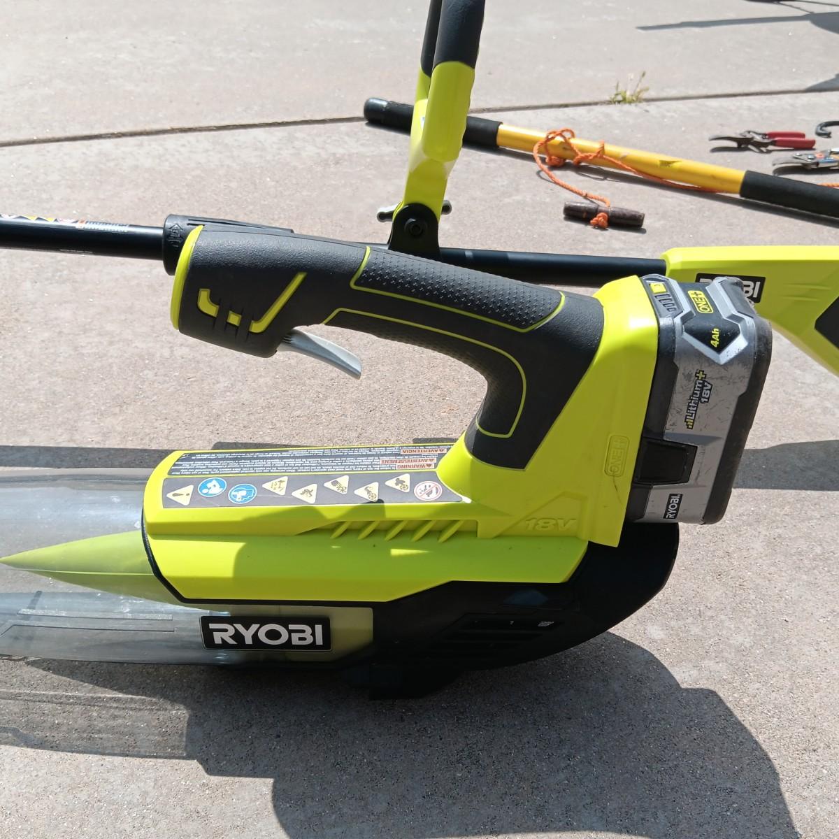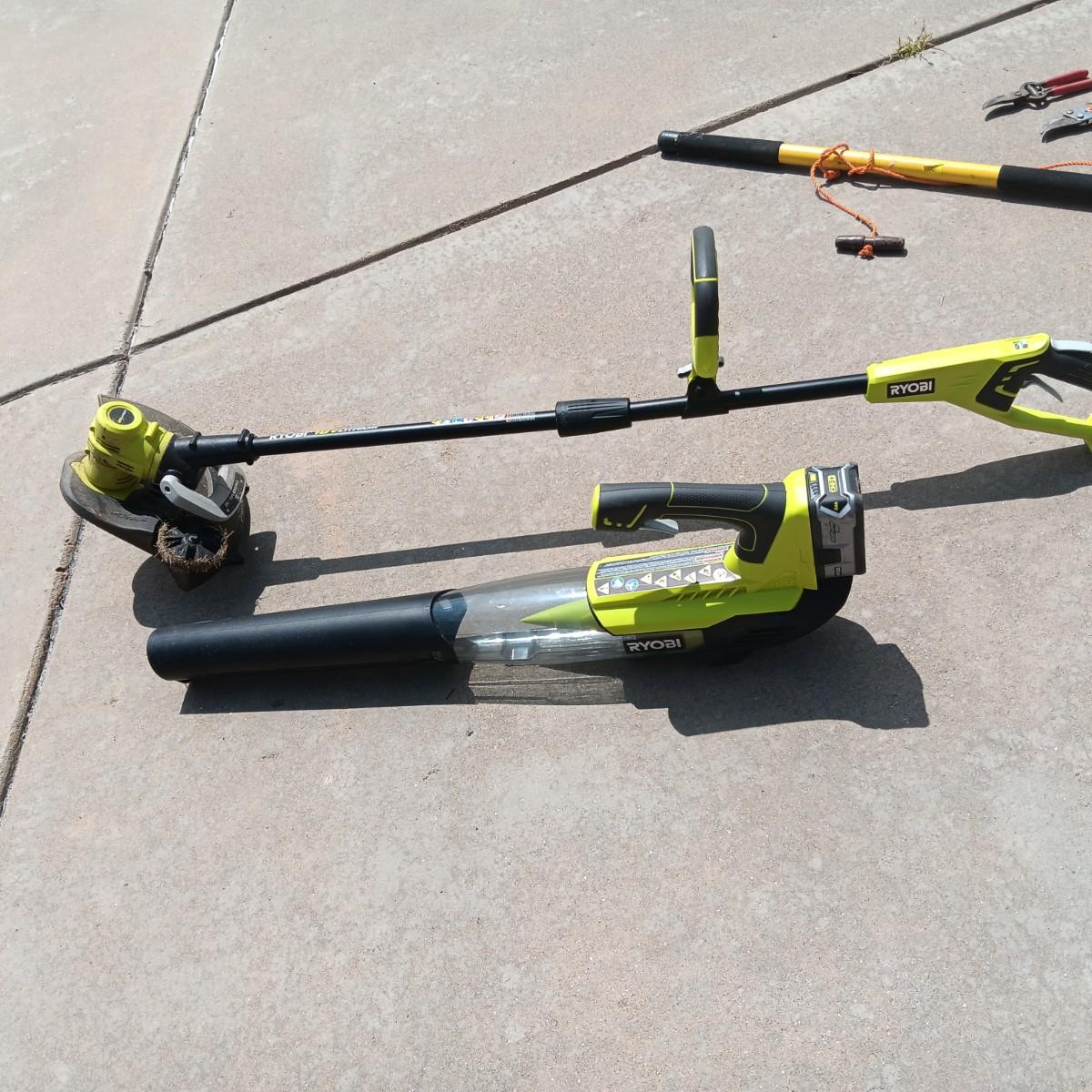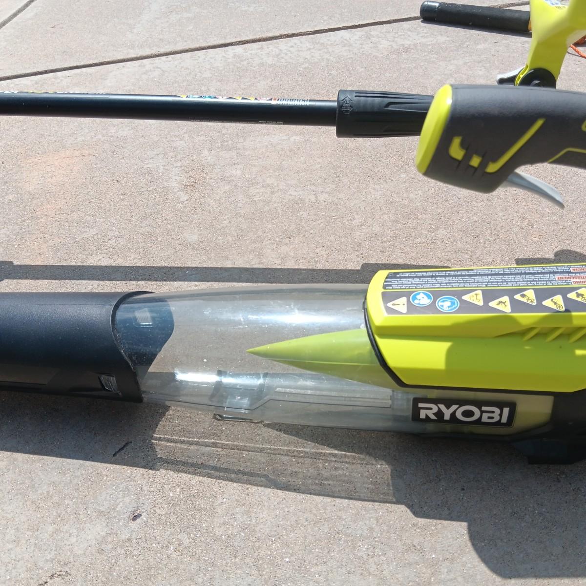 RYOBI CORDLESS WEED CUTTER AND LEAF BLOWER WITH BATTERY AND CHARGER