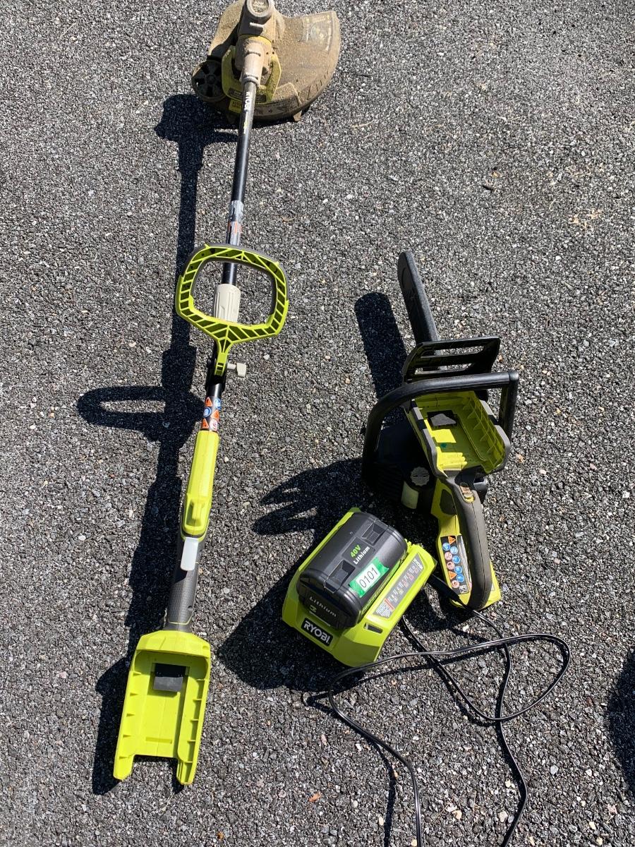 Ryobi Cordless Weedwacker Chainsaw Lot