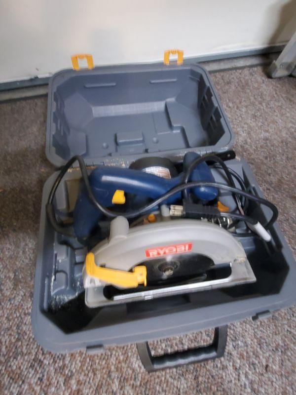 This Ryobi hand held circular saw is almost new and comes with the case included.