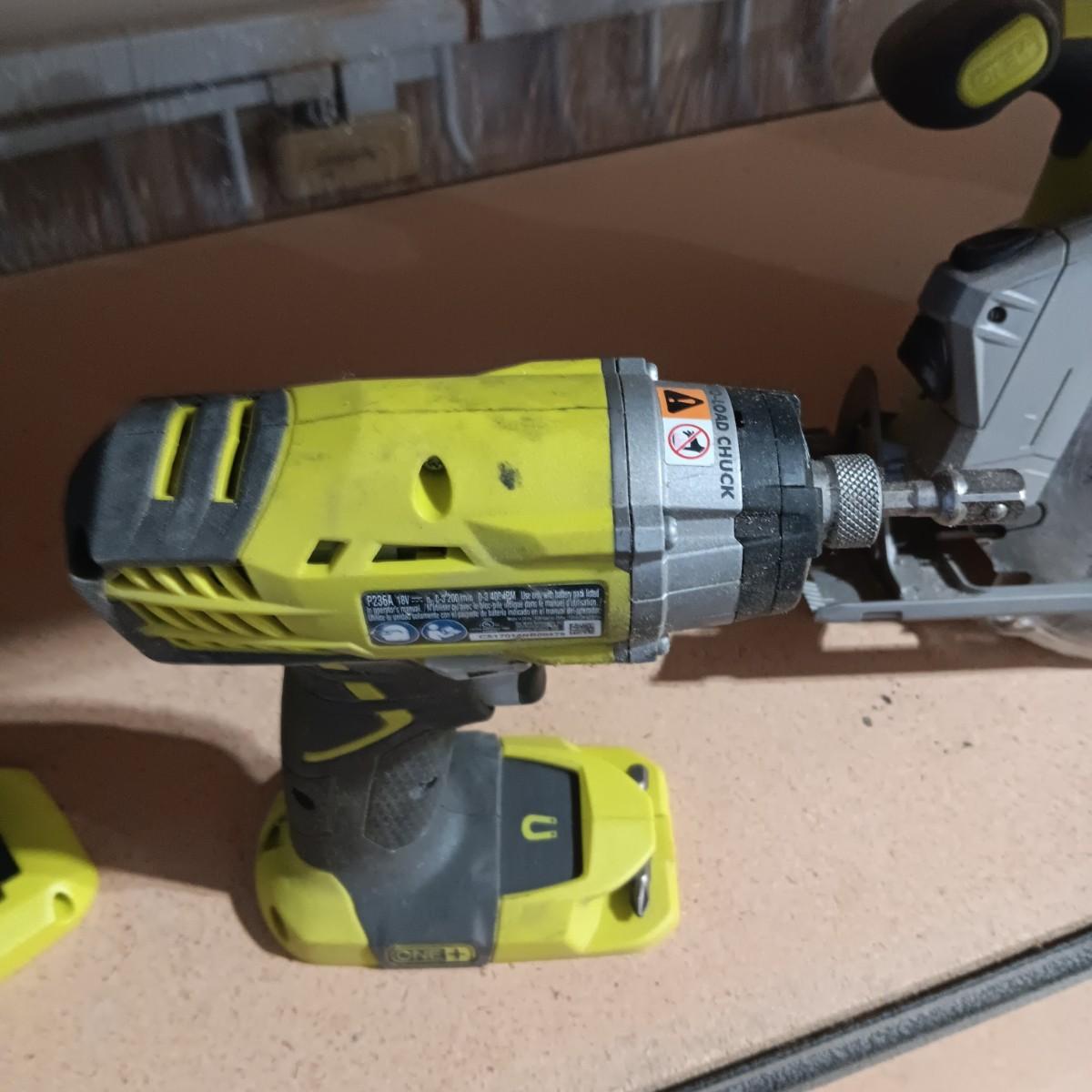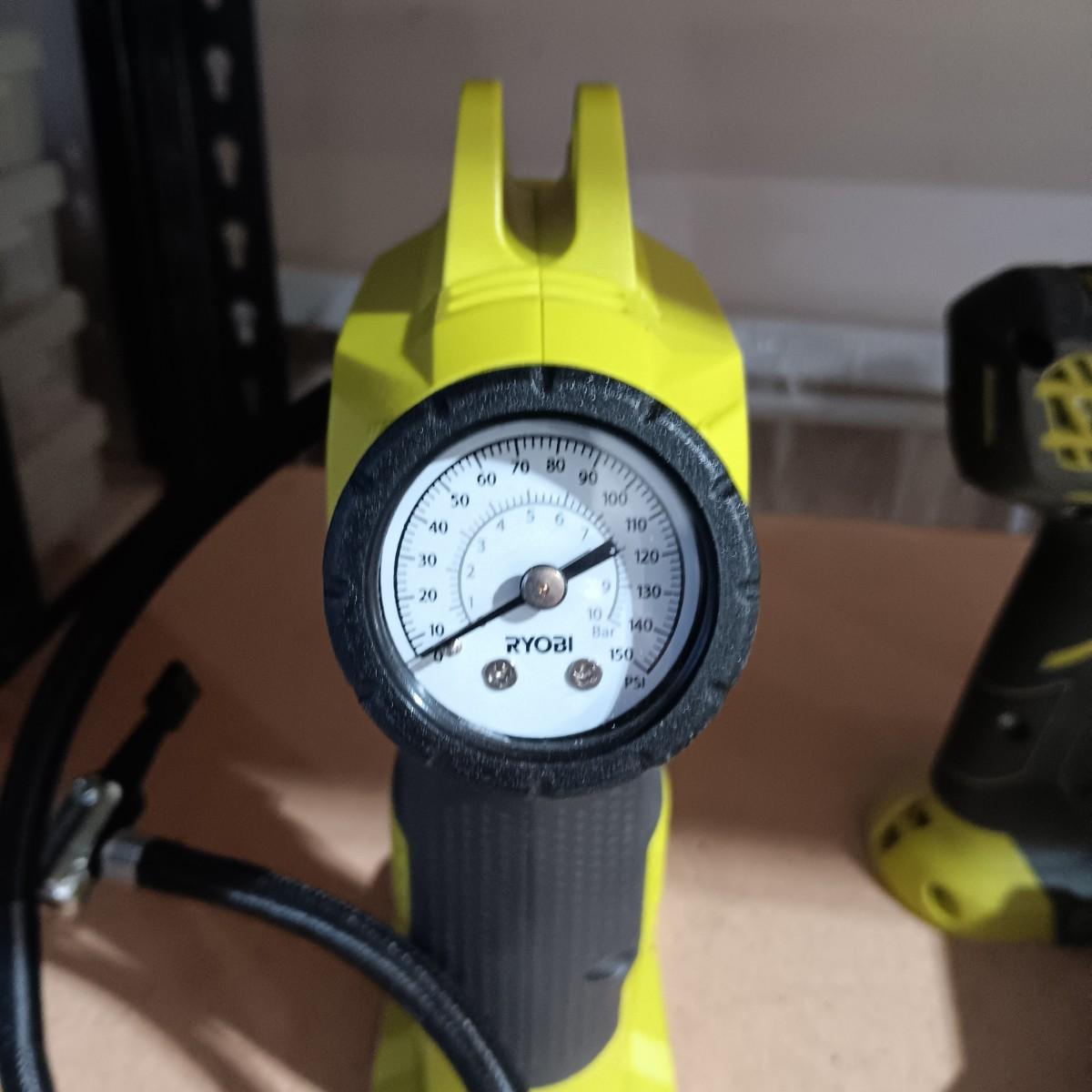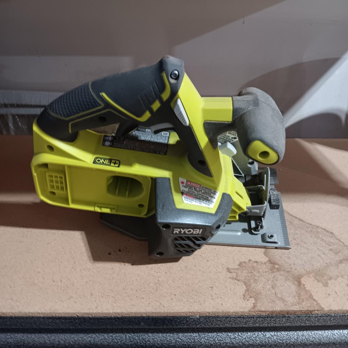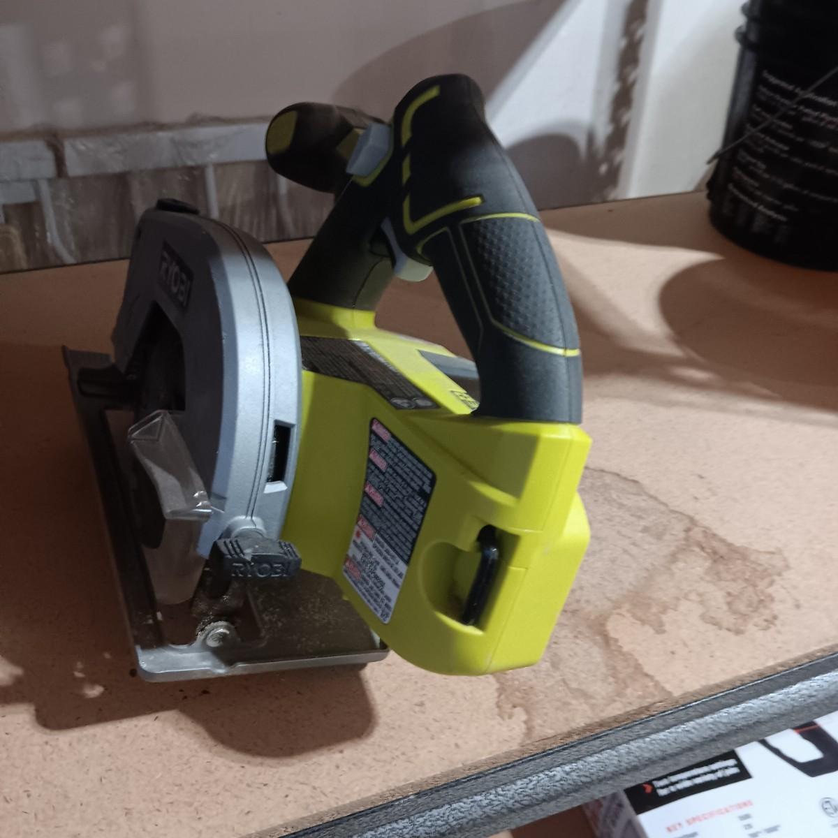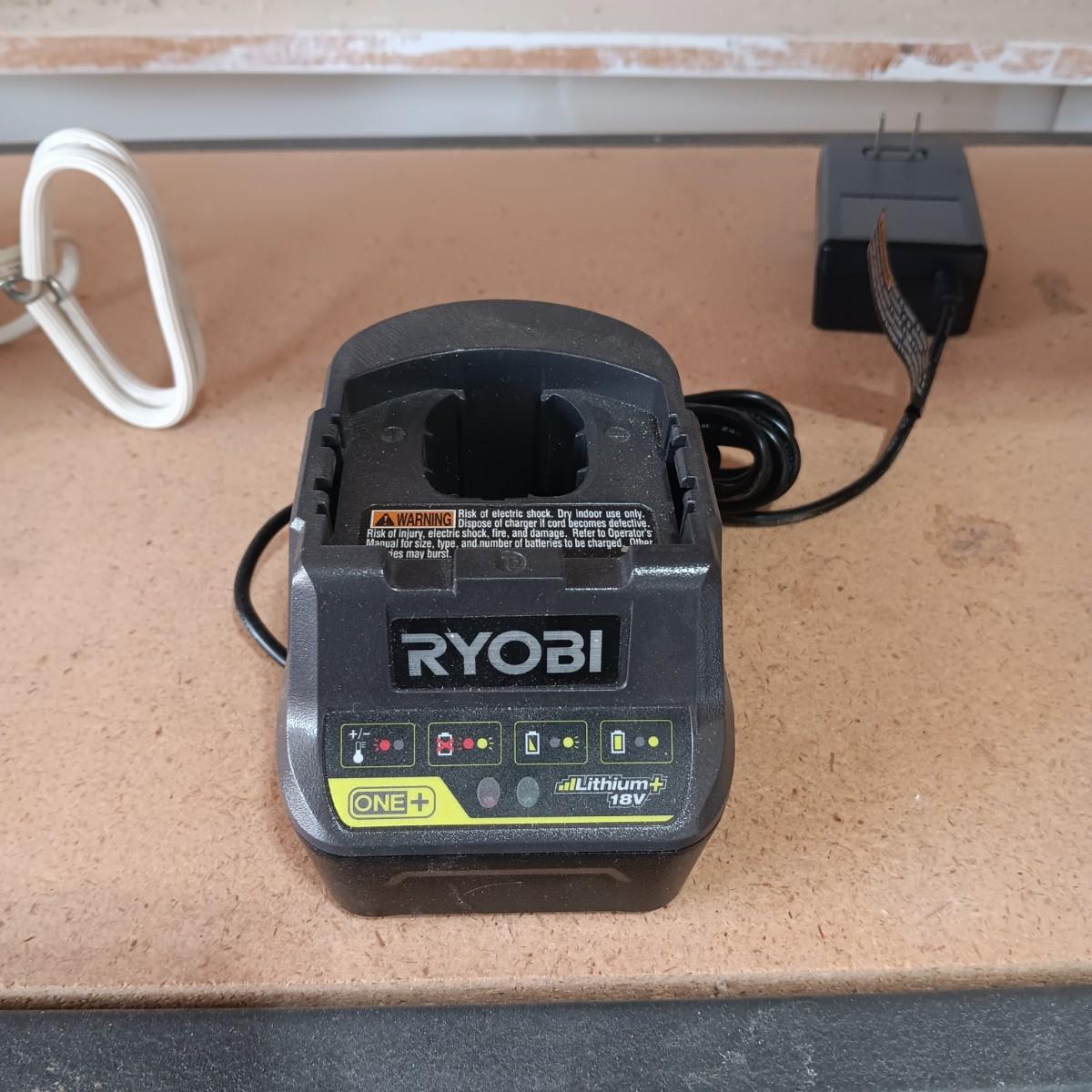 RYOBI INFLATOR, CIRCULAR SAW AND DRILL (INCLUDES CHARGER BUT NO BATTERY)