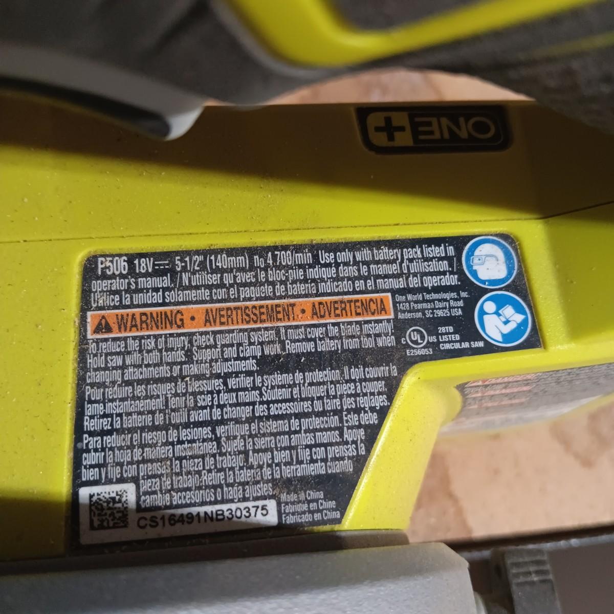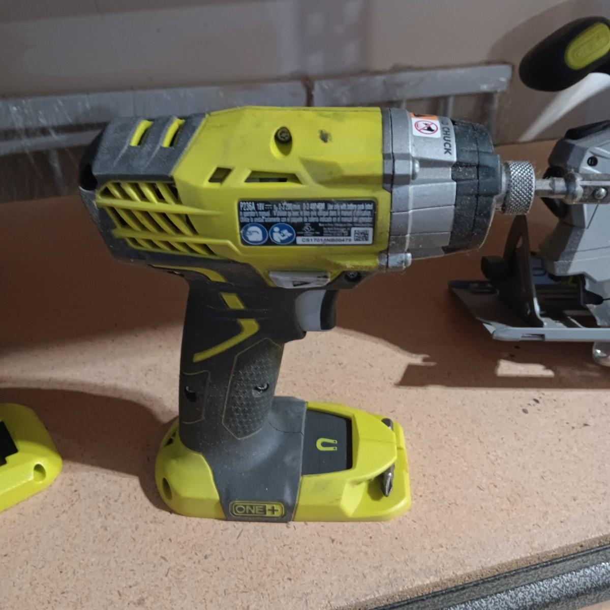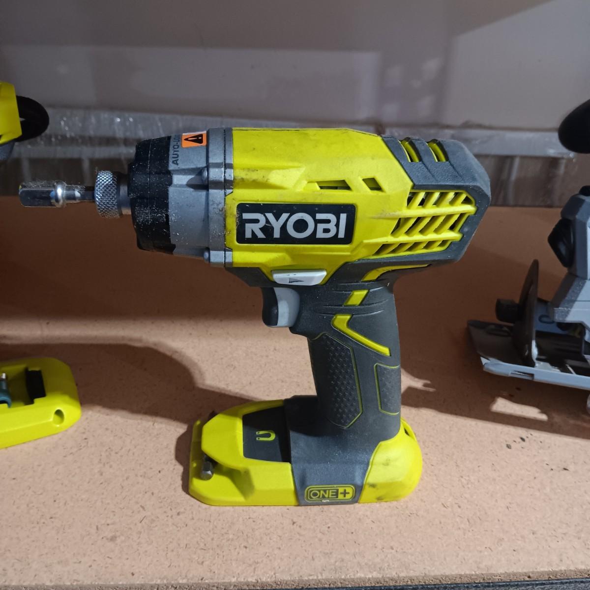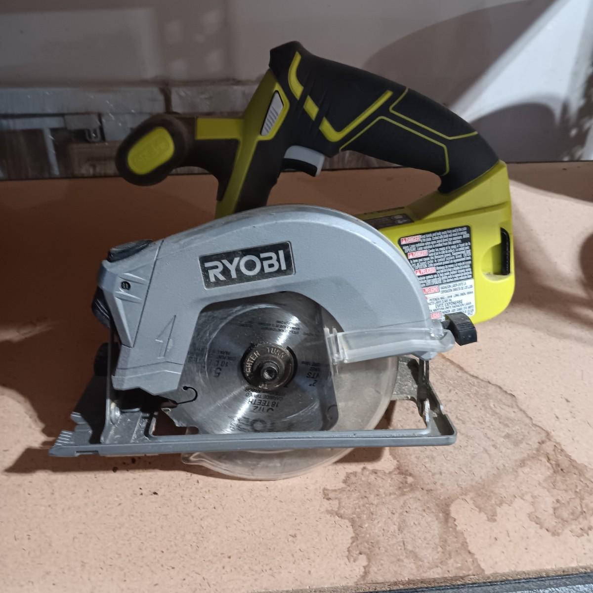 RYOBI INFLATOR, CIRCULAR SAW AND DRILL (INCLUDES CHARGER BUT NO BATTERY)