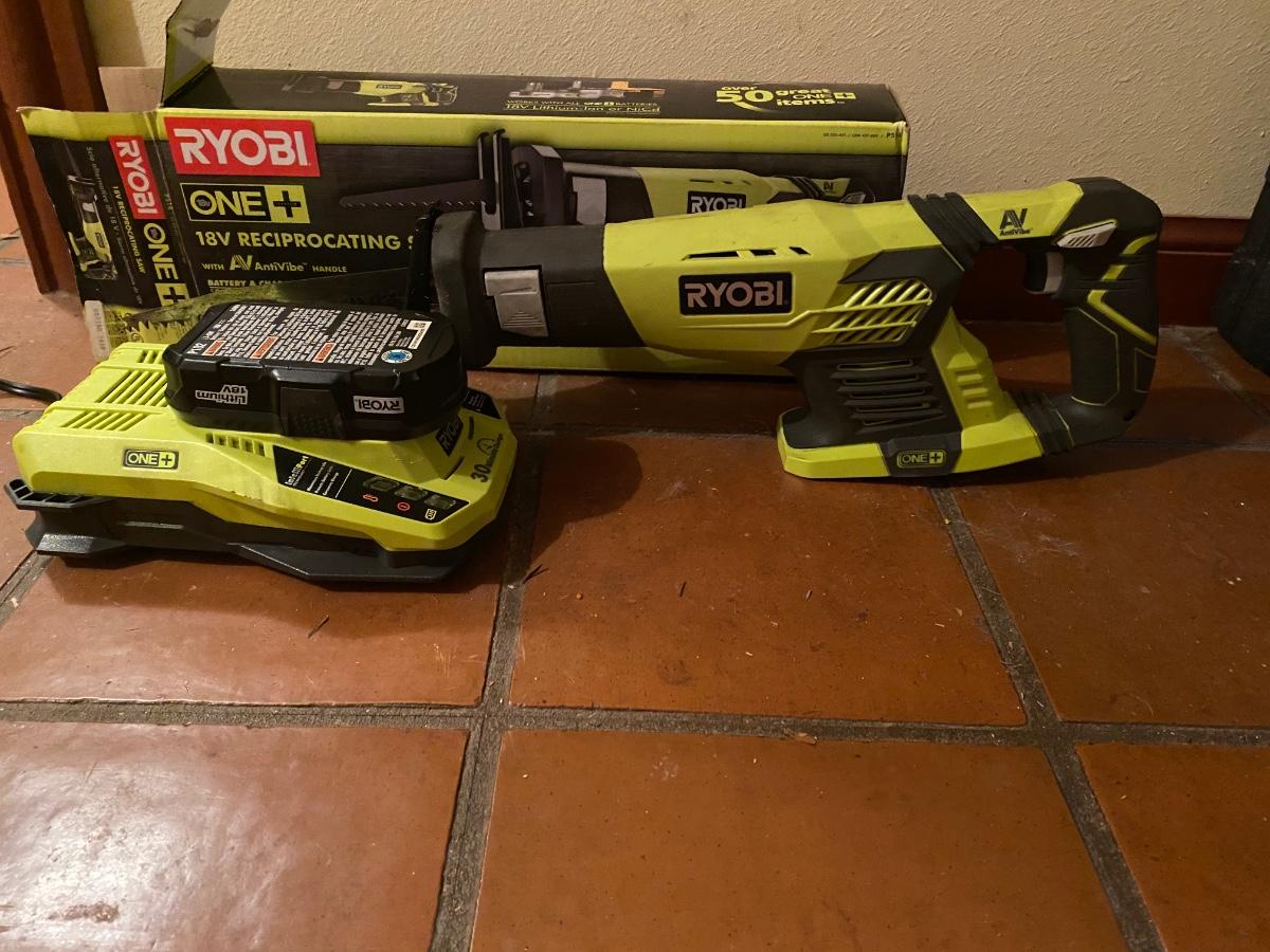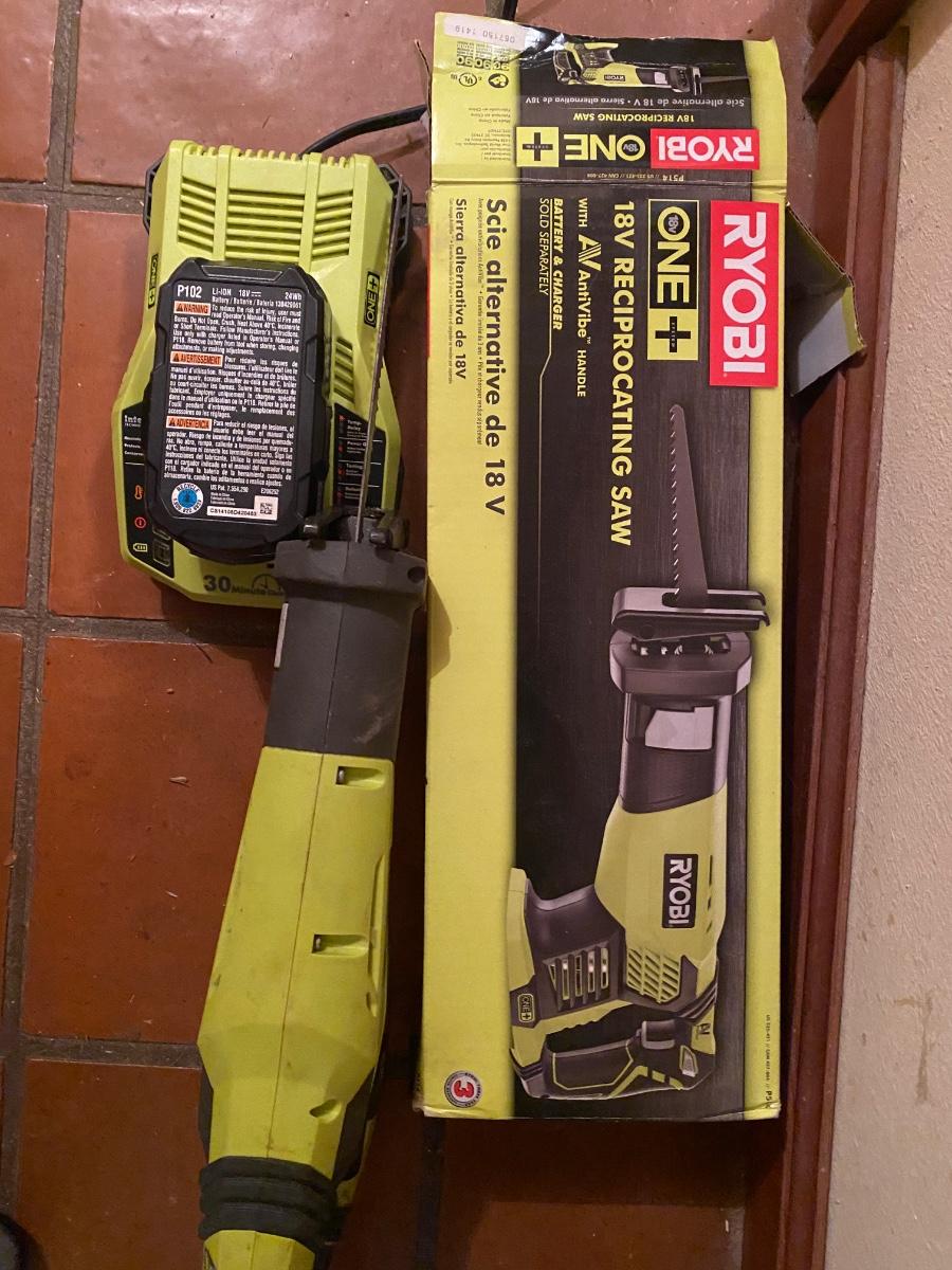 Ryobi One+ 18V Reciprocating Saw, Model no. P102, in box with battery, charger and manual