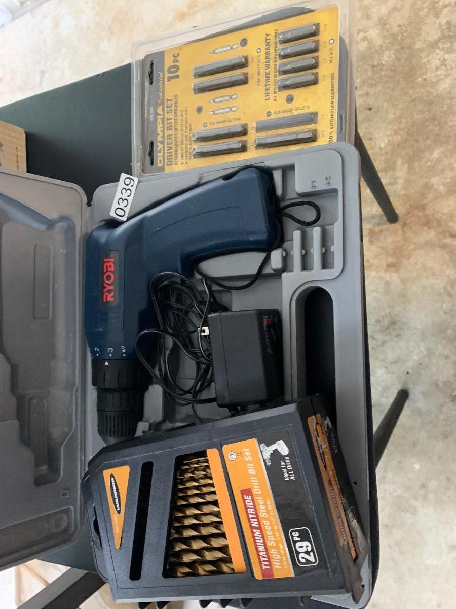 Ryobi Power Drill w Titanium Bit Set & Screw Set