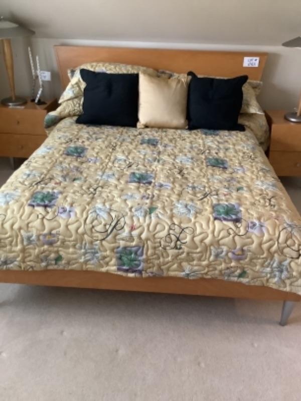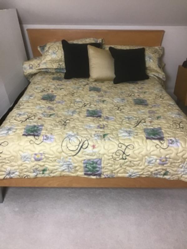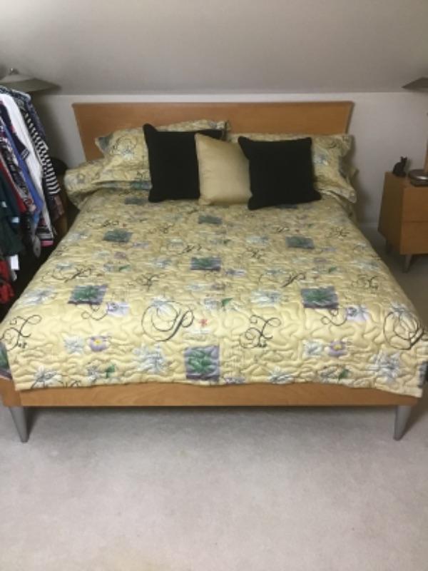 Huppe Mid-Century Blonde Maple Queen Size Bed, Bedding & Valance Included