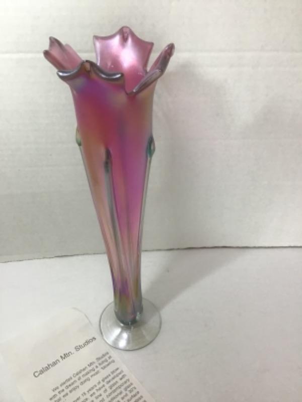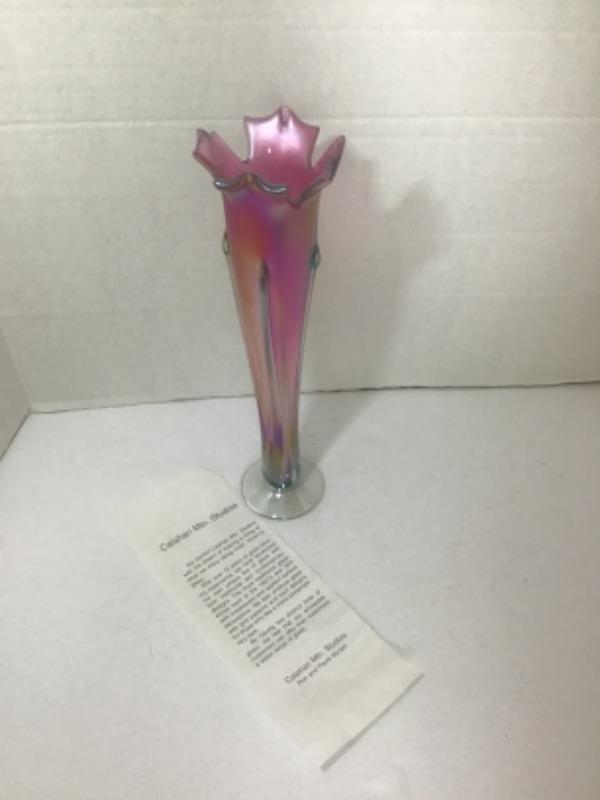 Signed Handblown Pink Glass Vase by Ron Mynatt -
