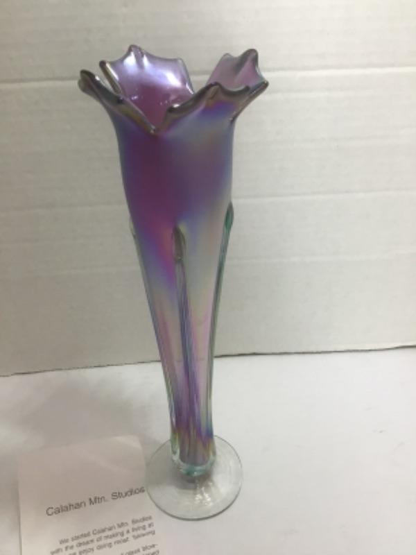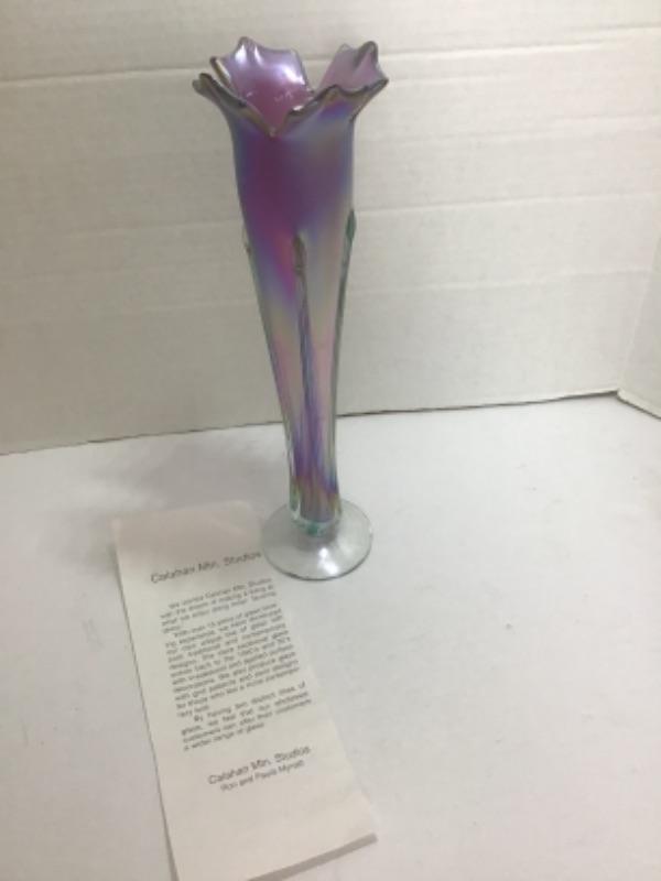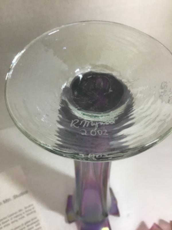 S - 1165  Signed Handblown Purple Glass Vase by Ron Mynatt