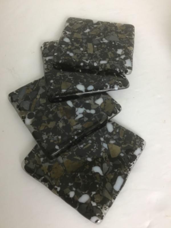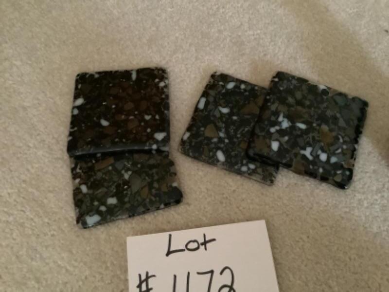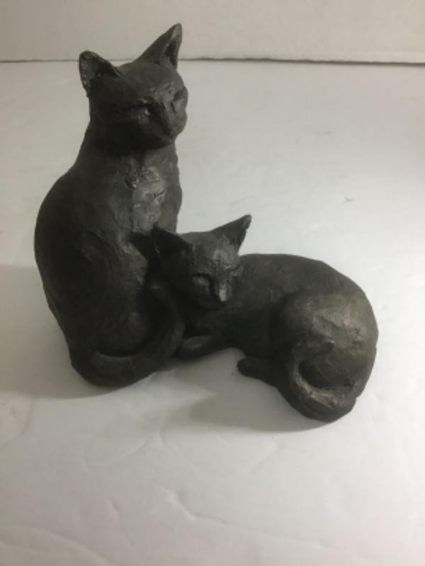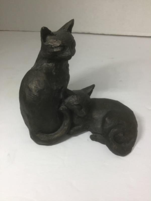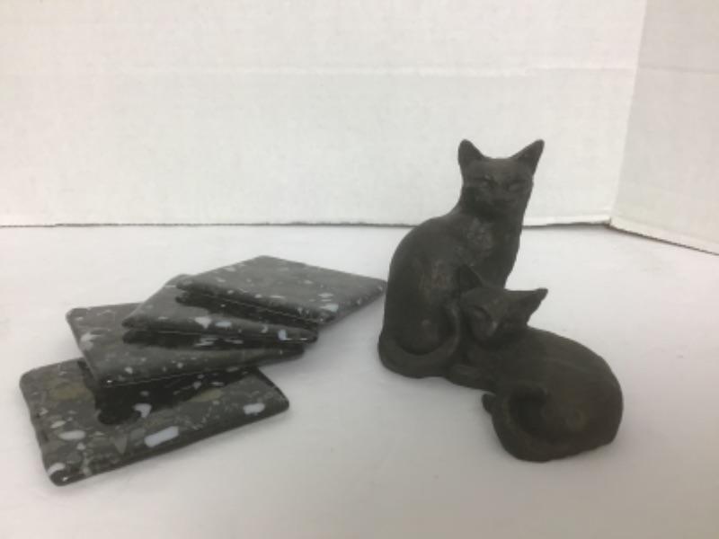 S - 1172 Artisan Signed Composite Cats & 4 Glass Coasters