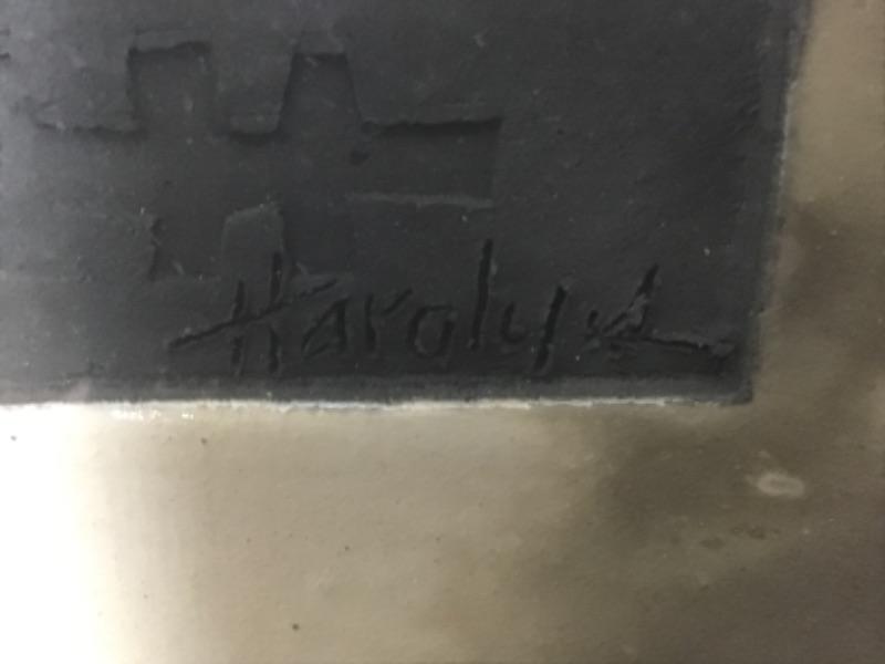 S - 1181 Signed Raku Relief Tile with Zinc by Harolyn  Long