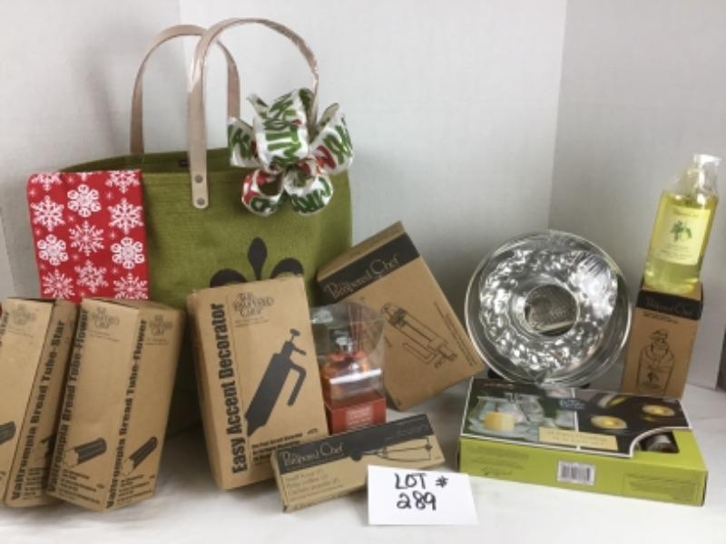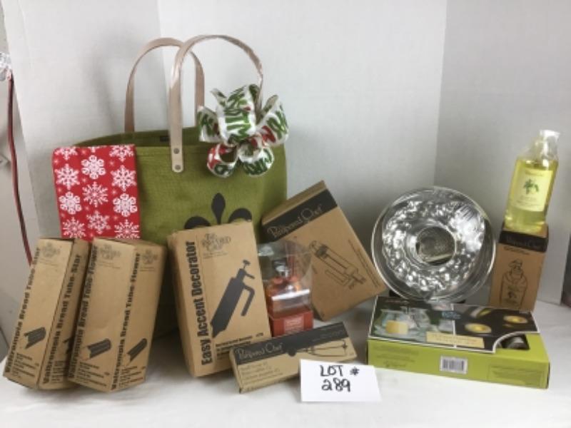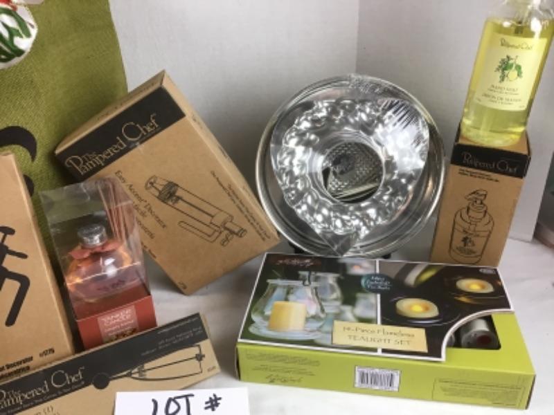 Great Pamperd Chef soap, Baking Pans , Yankee Candle defuser, frameless candles, bread tube, tea towel, small scoop and more