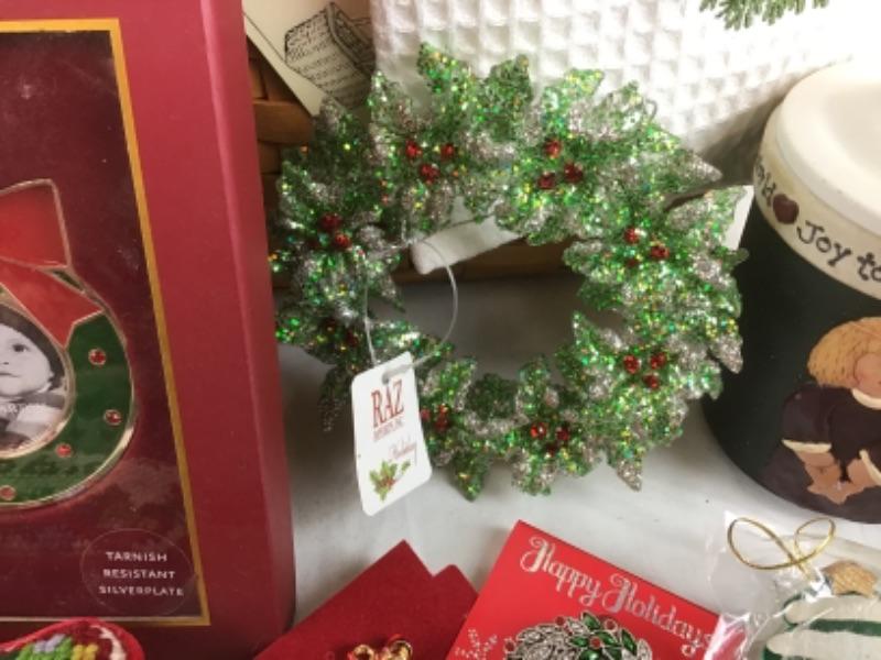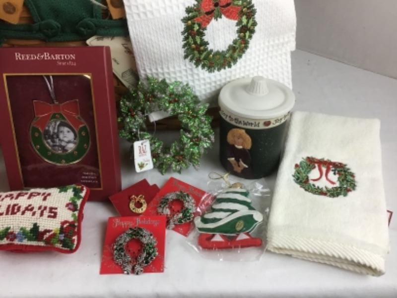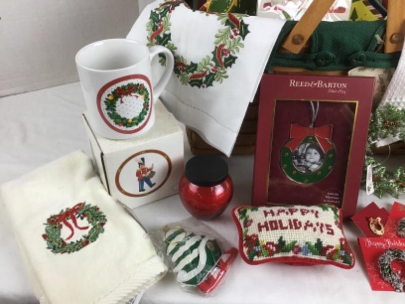 Tea towels, mug, jewelry, candle, small pillow, plate, tray, 3 pc. Dish cloth, oven mitt set, ornaments, and more