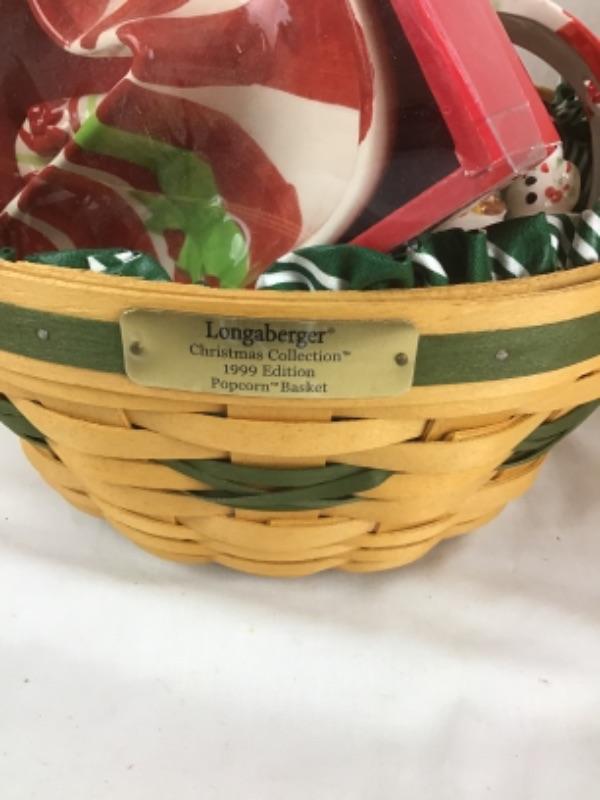 1 ) basket is 1999 “Popcorn Basket” with Fabric and Divided Plastic Liners