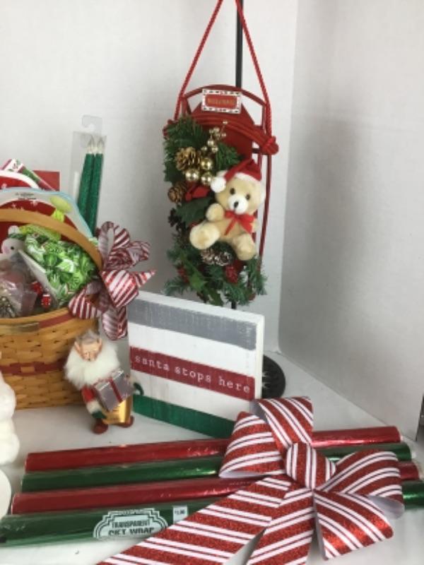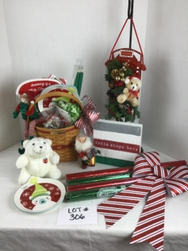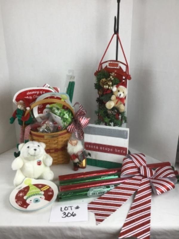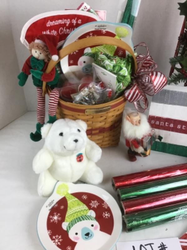 Polar Bear Stuffed Animal, Wrapping Paper, Jewelry, Candles, Plates with Polar Bear, Santa Sign, Decorative Sleigh, Apron and more