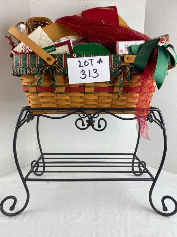 S - 313 Large 2 Handled Longaberger Christmas Gift basket with Lid & Stand