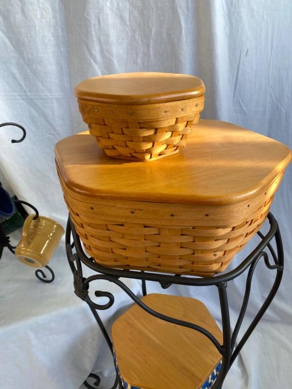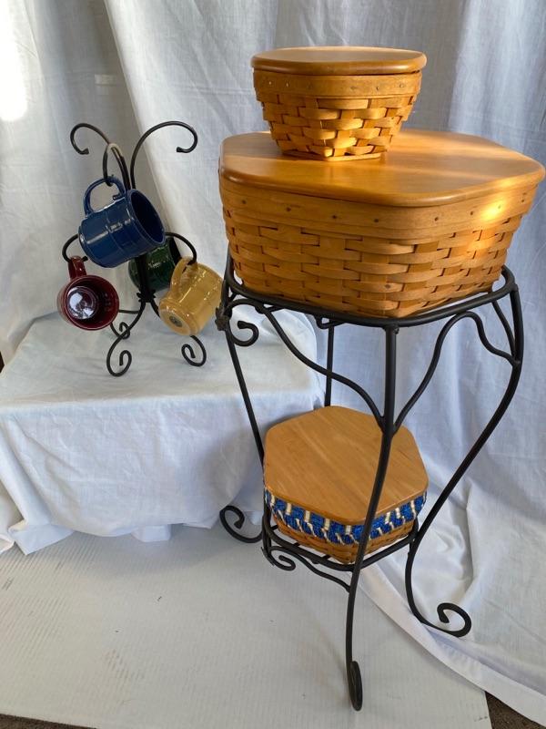 S - 342  Longaberger Wrought Iron Stands, Longaberger Baskets & Mugs