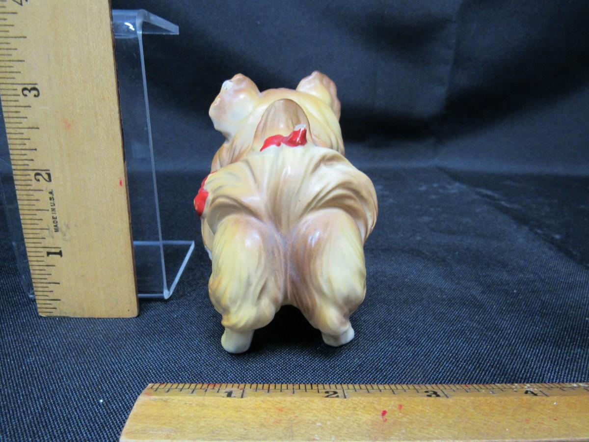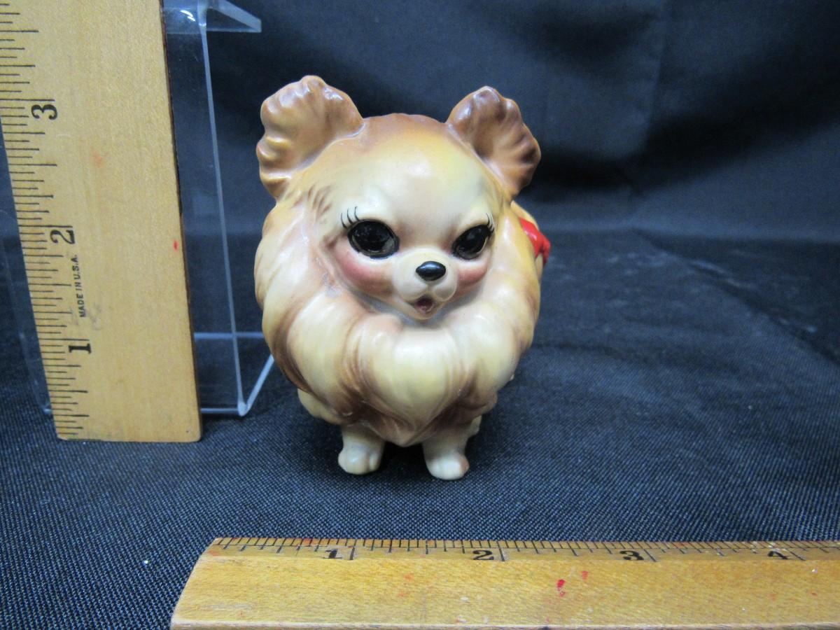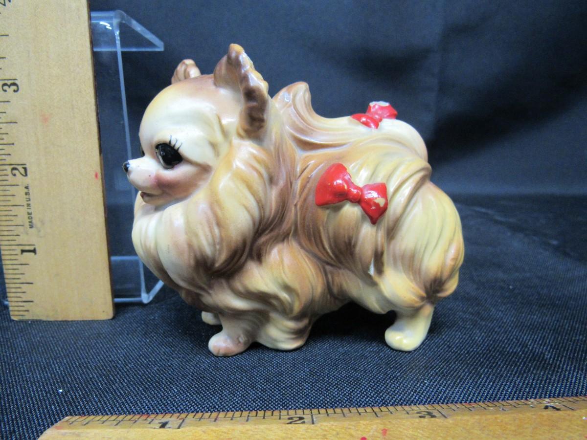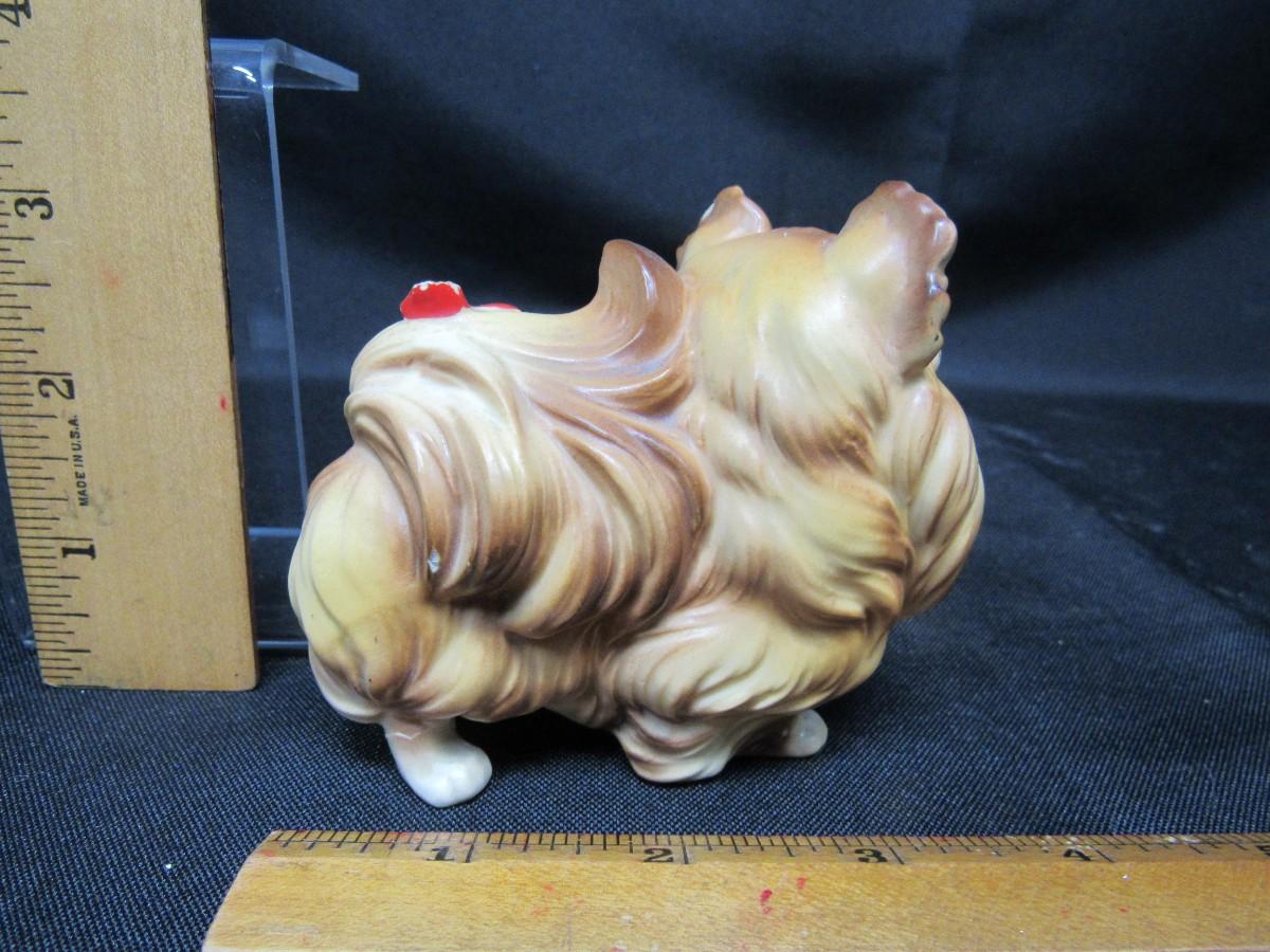 Vintage Pomeranian Dog with Red Bows Figurine