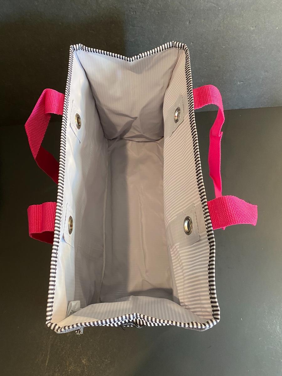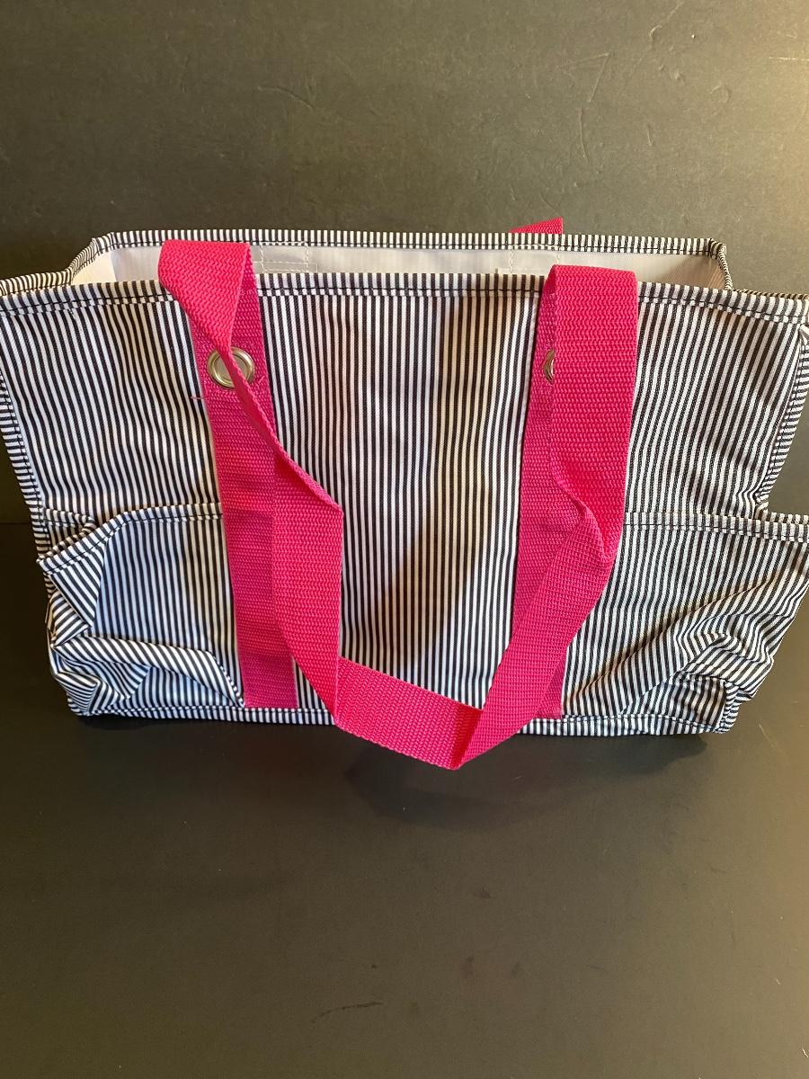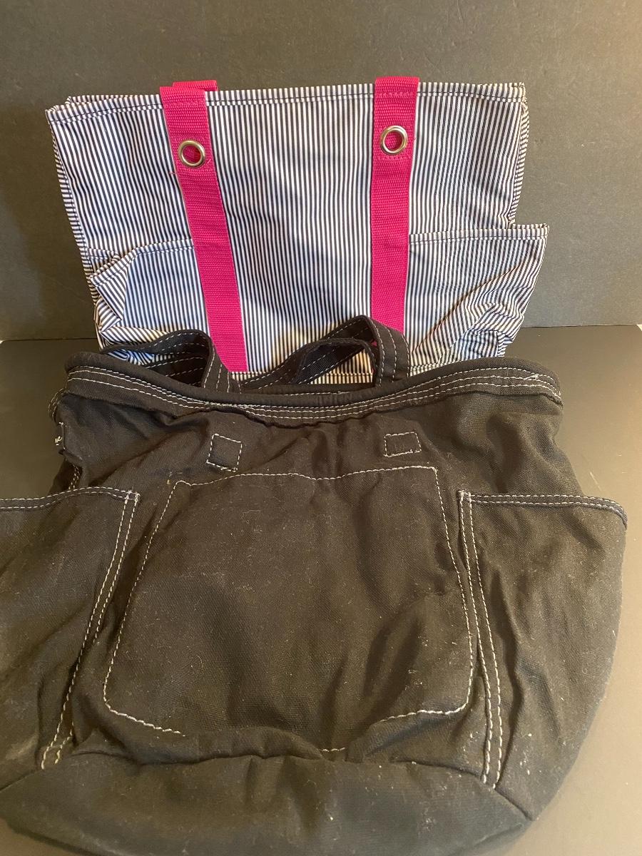 Set of two Thirty- one bags. Black tote and blue &white stripe large tote insert. Pre-owned.