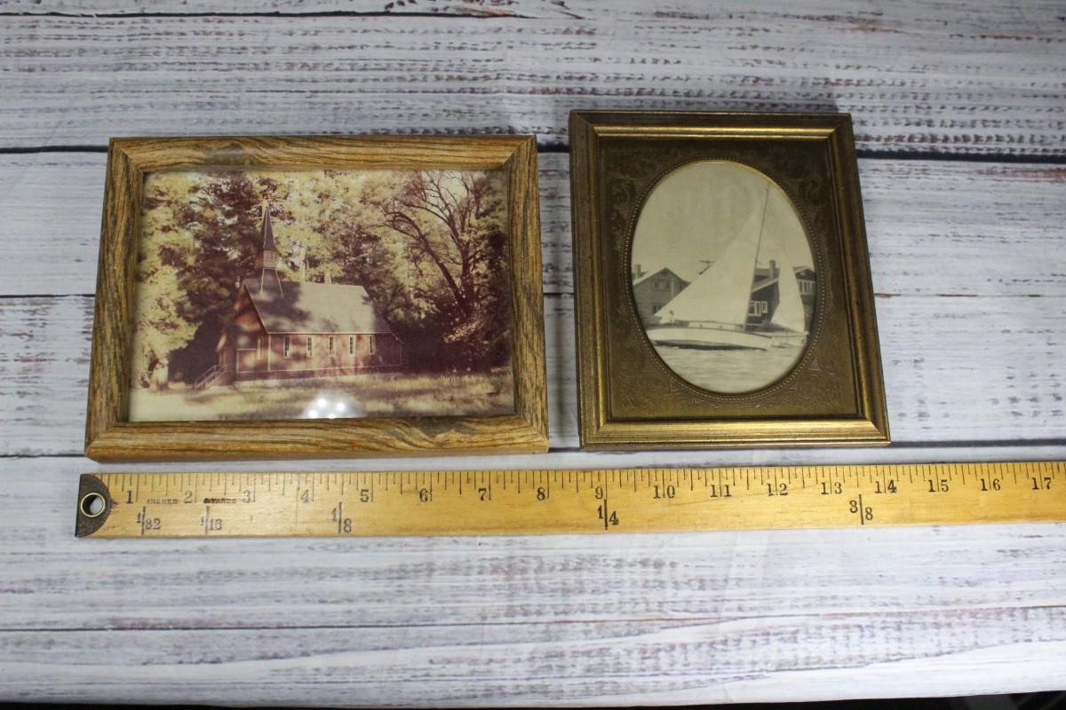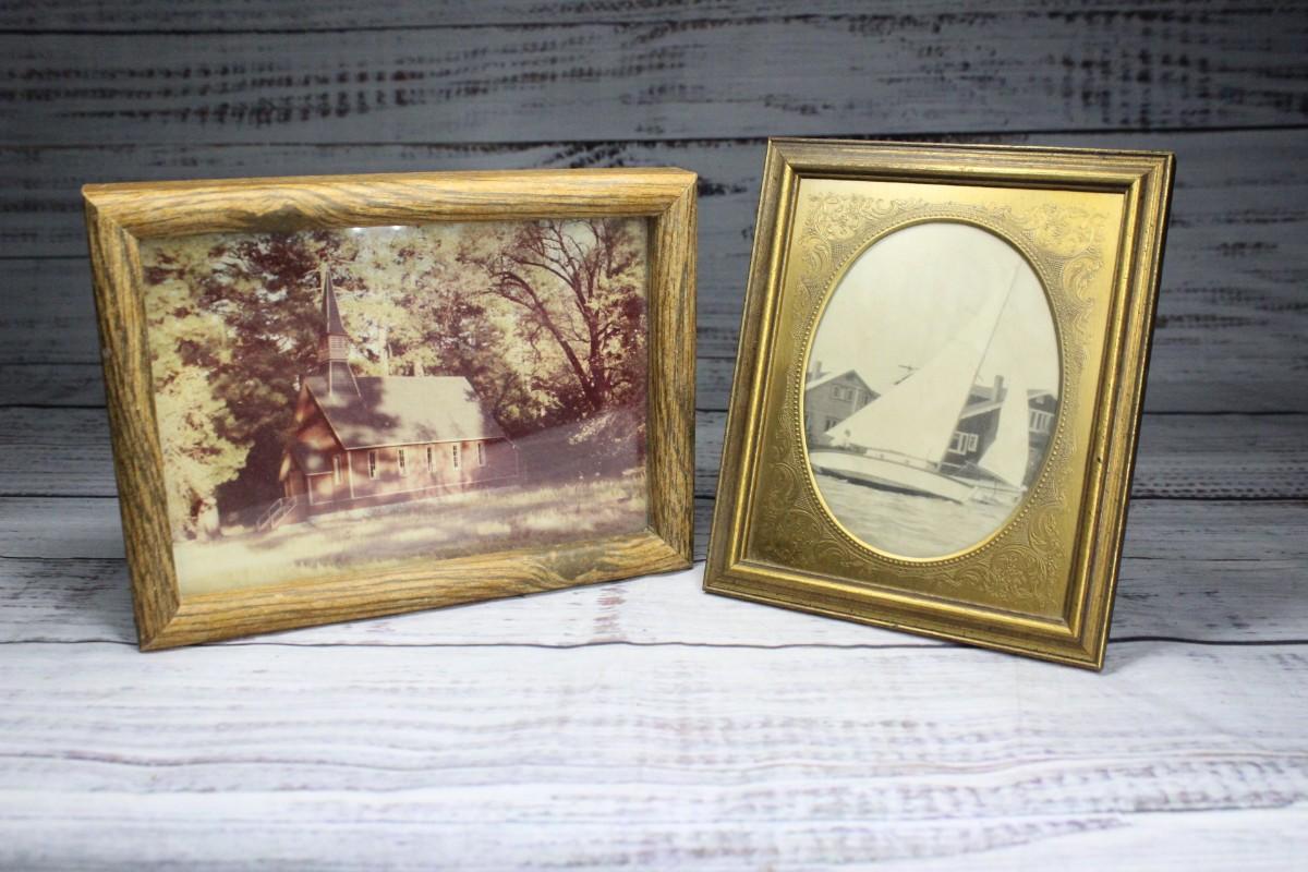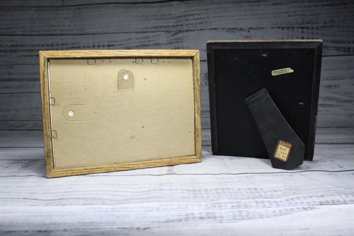 Vintage Set of Picture Frames with Photos, there's no significant damage to any of the frames or protective glass and is in good vintage condition. See pictures for more details.