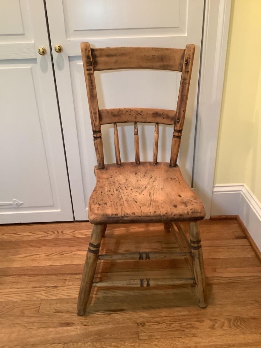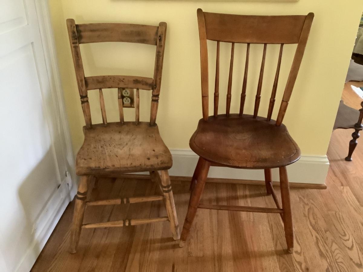 S 916. Two Antique Wooden Plank Bottom Chairs