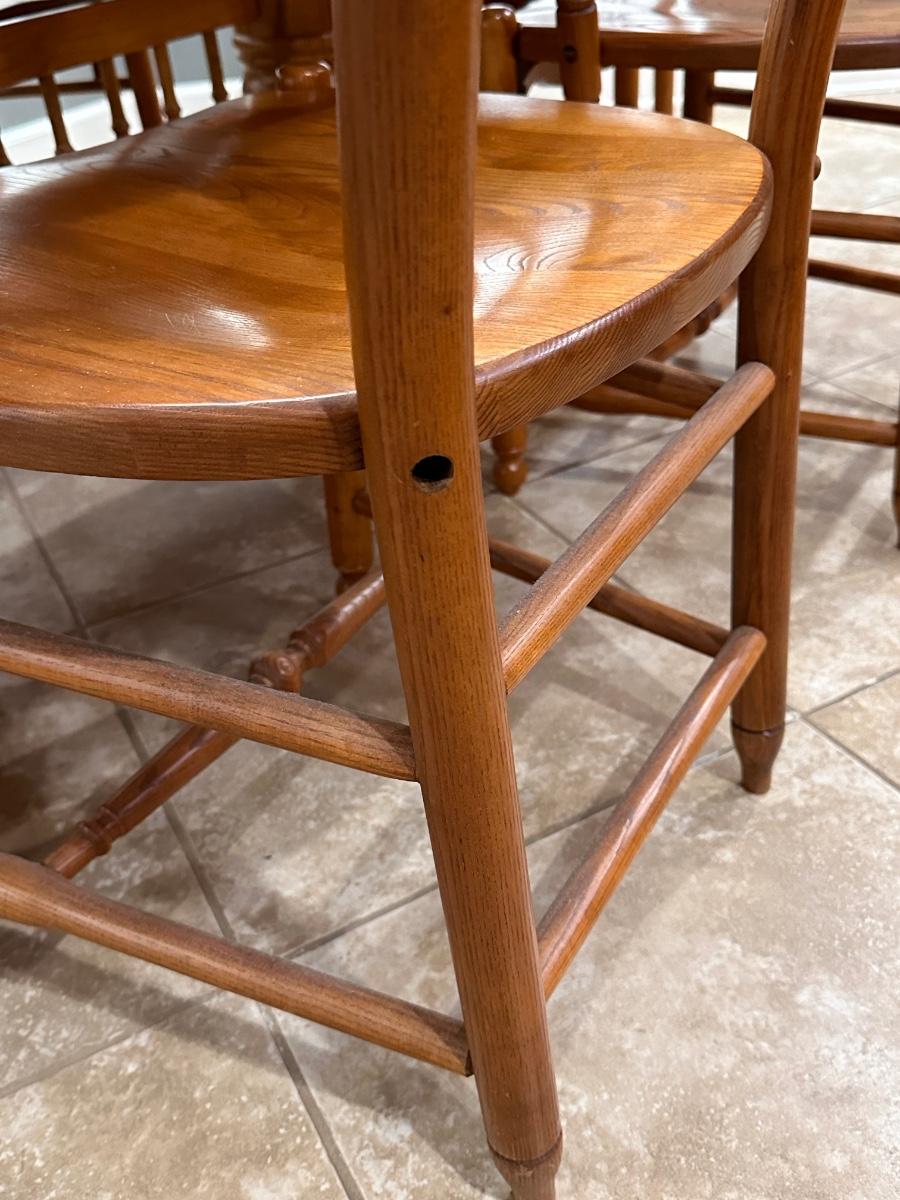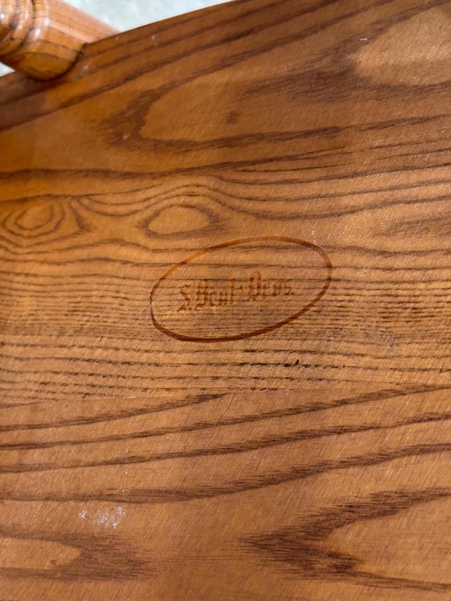 S. BENL & BROS ~ Solid Oak Tressel Table w/6 Matching Chairs