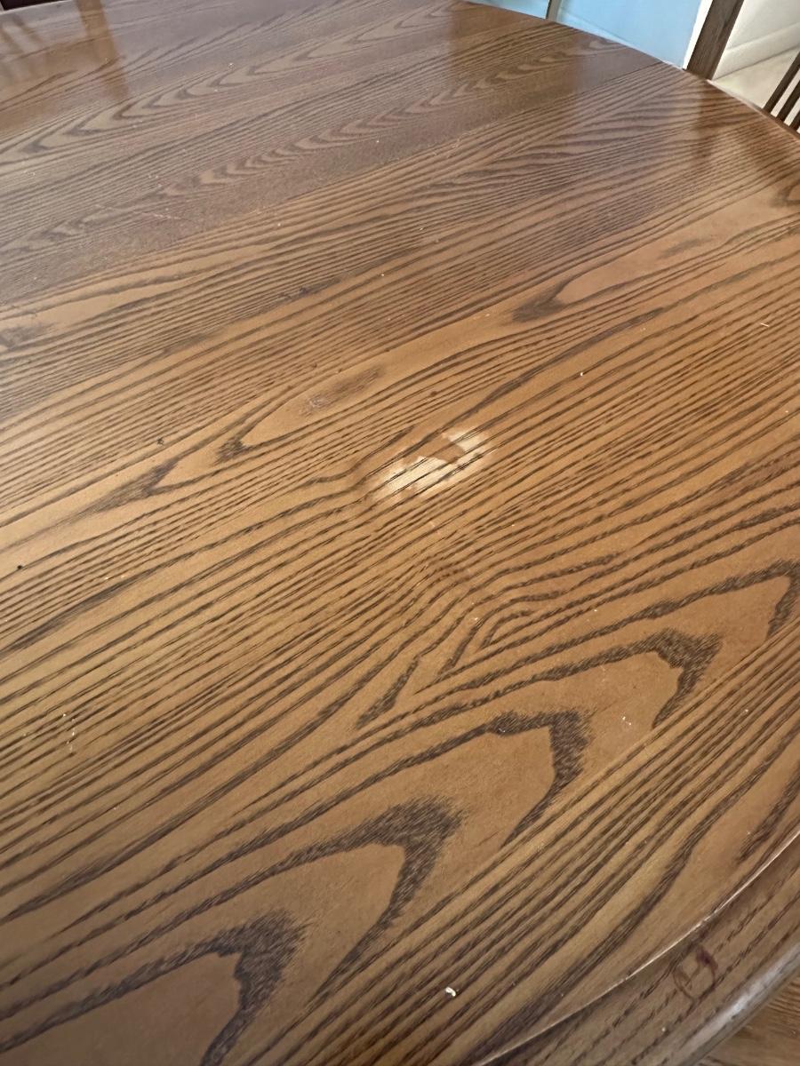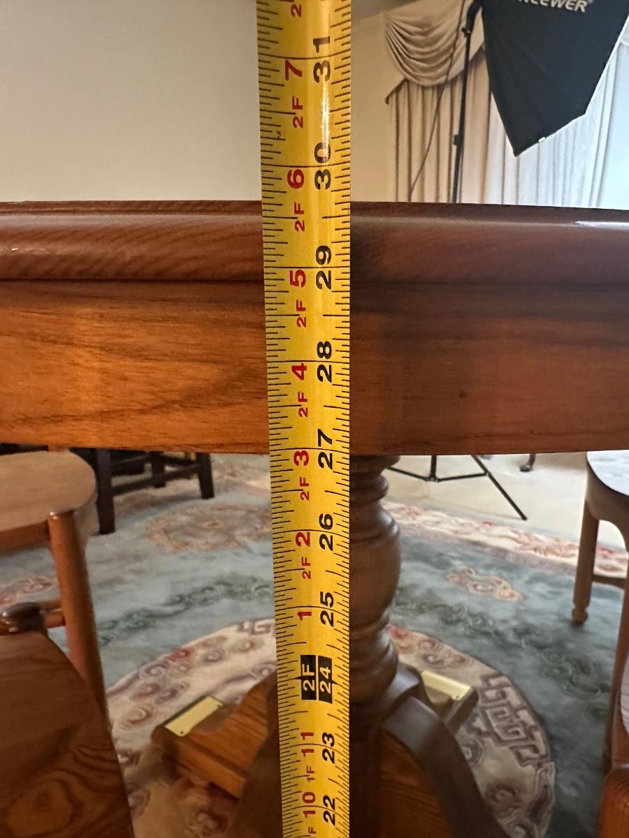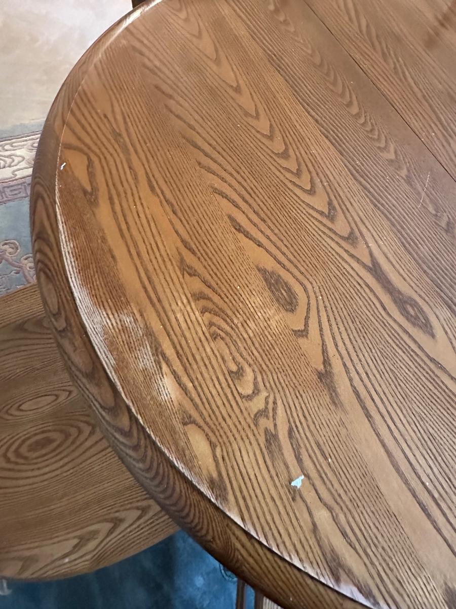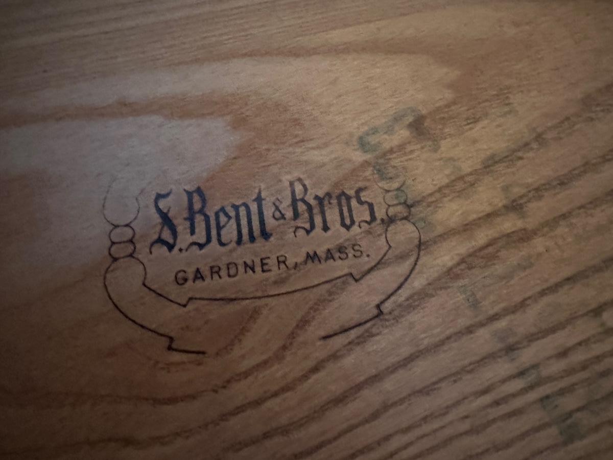 S. Bent & Bros Oak Pedestal Dining Table with 4 Chairs + 2 Leaves