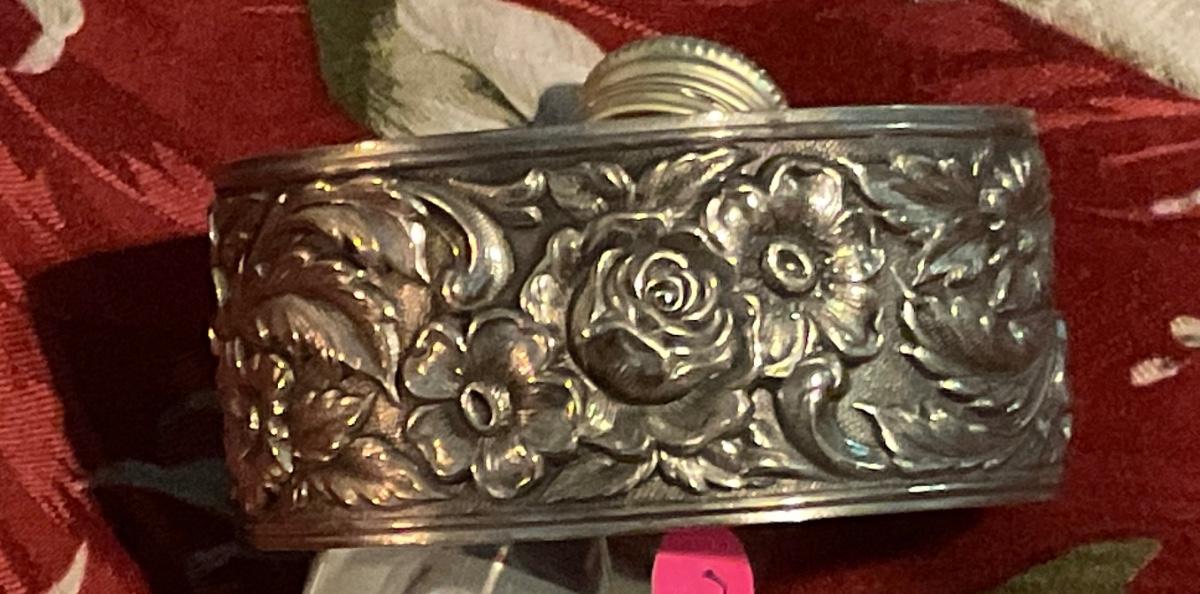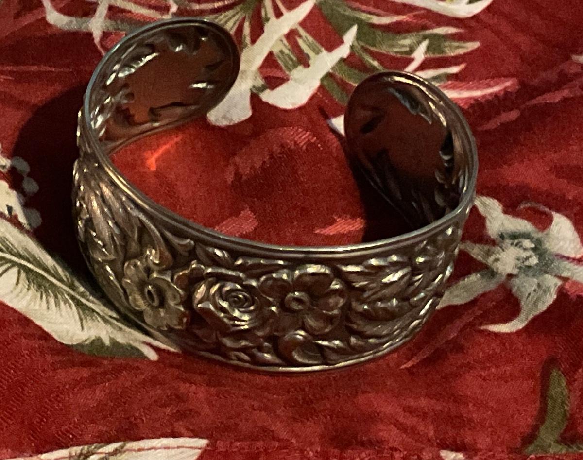 S Kirk and sons Sterling silver Rose Repousse bracelet made to match there silverware pattern