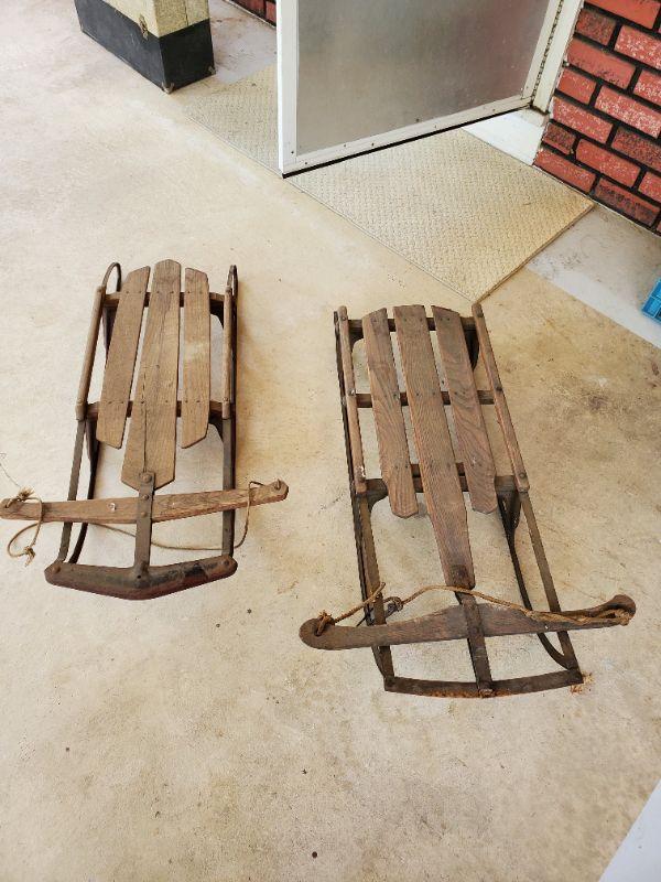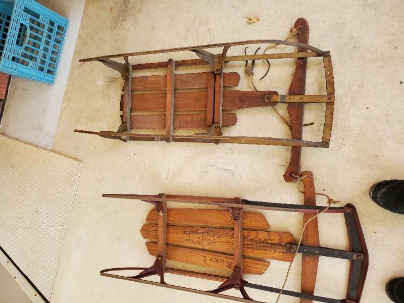 Two, vintage Flexible Flyer sleds. Get ready for snow!