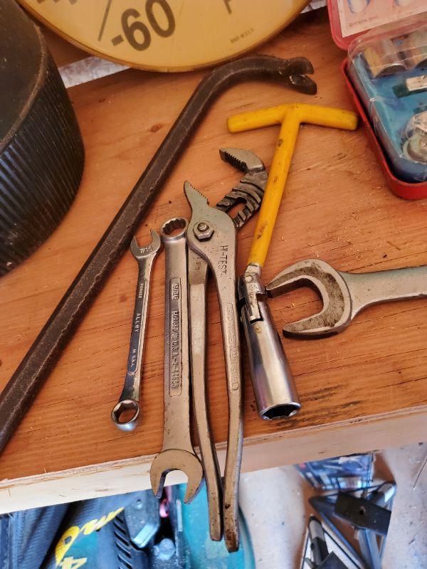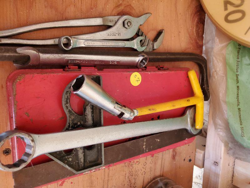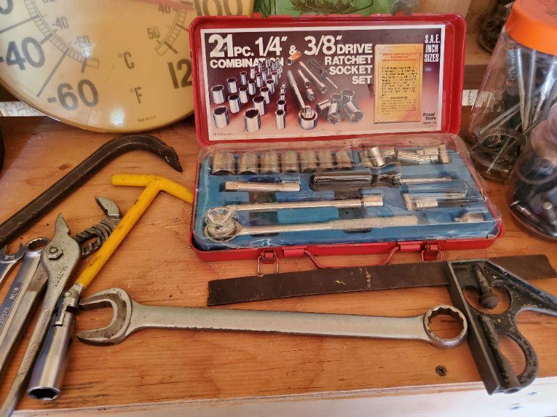 Ratchet Set, pry bar, saw and more. Bring box for packing.