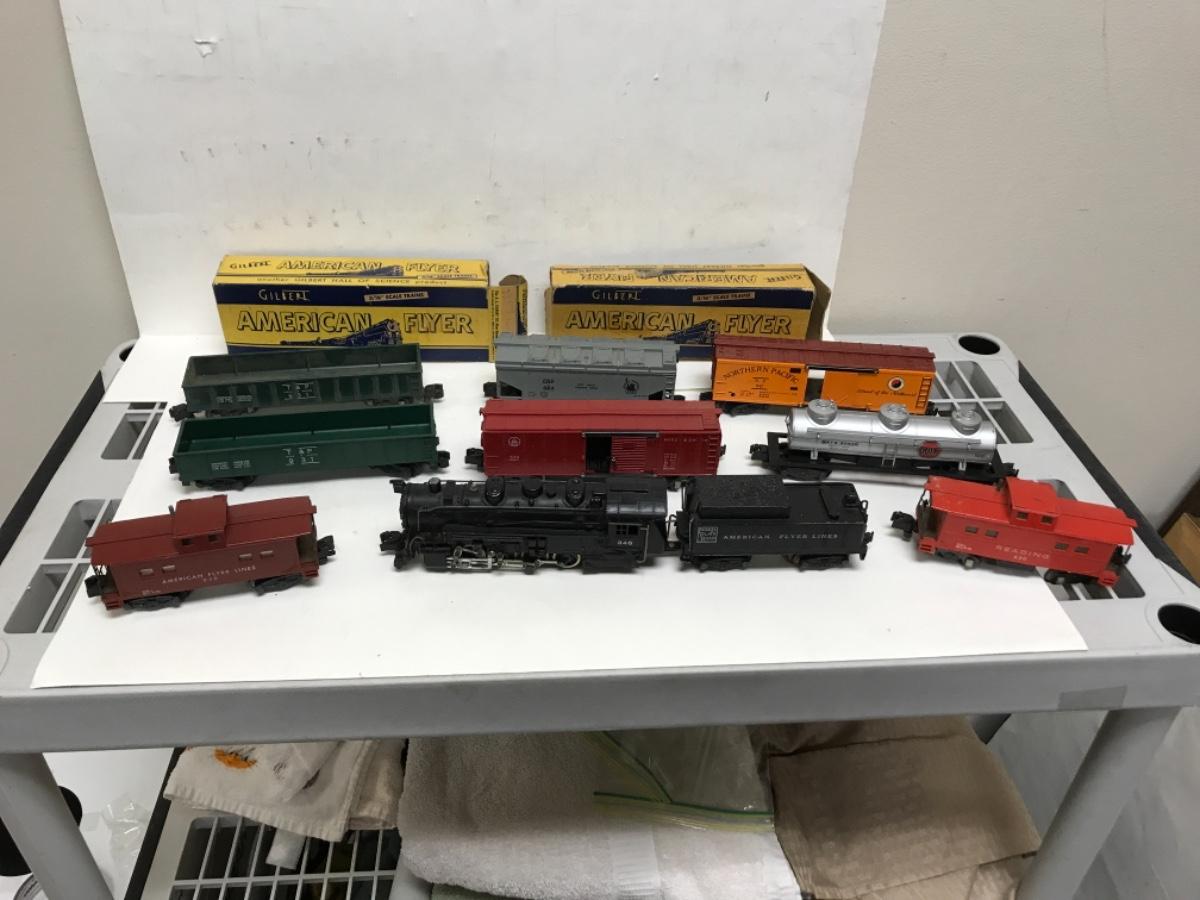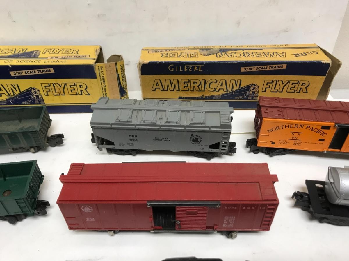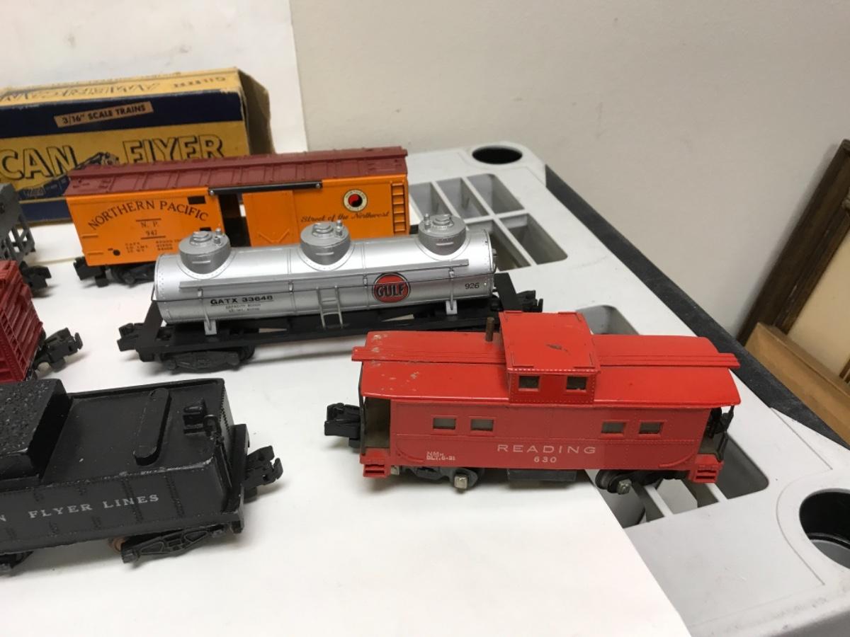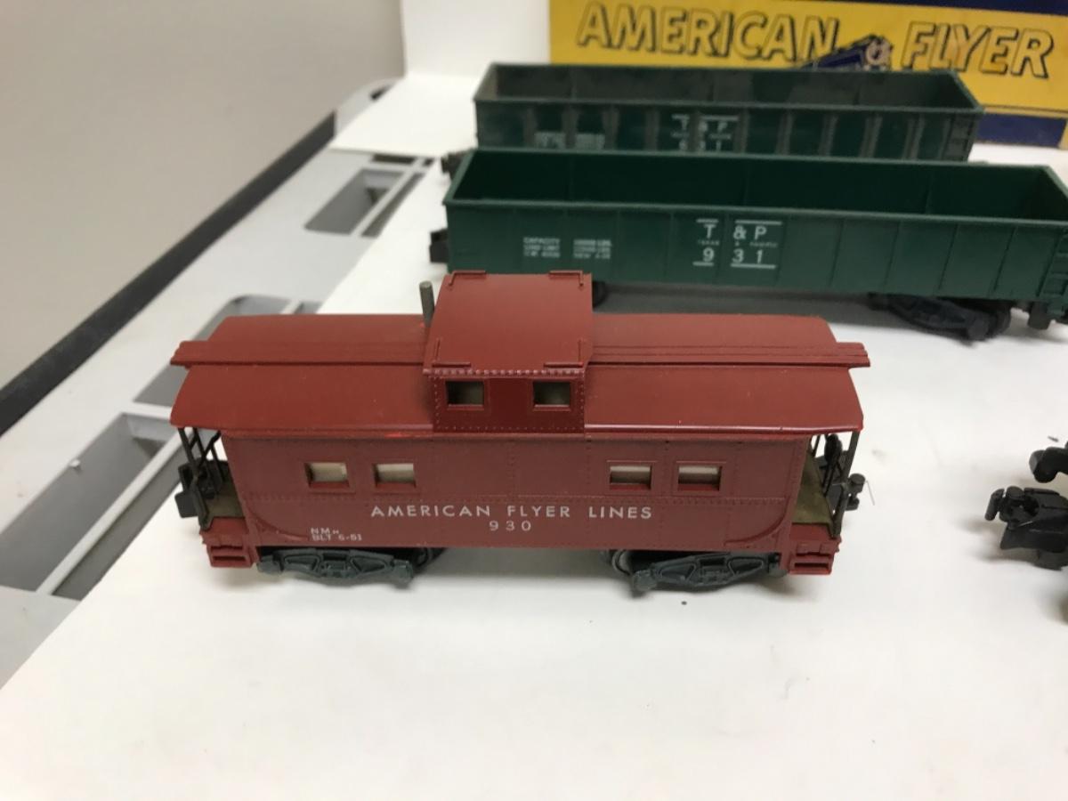 S Gauge American Flyer Freight consist-steam locomotive, tender and 8 cars 1950's