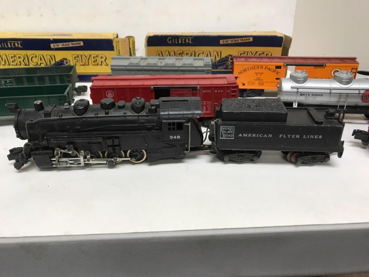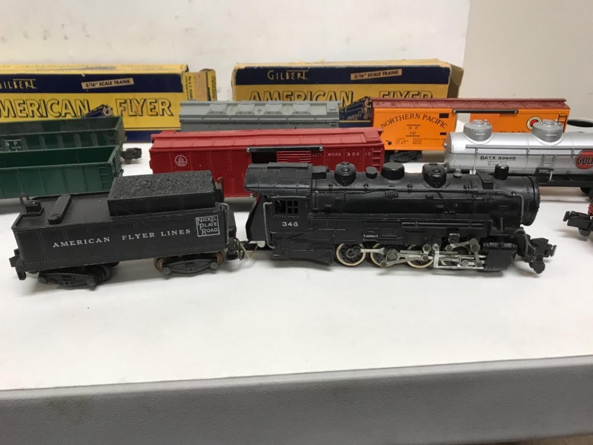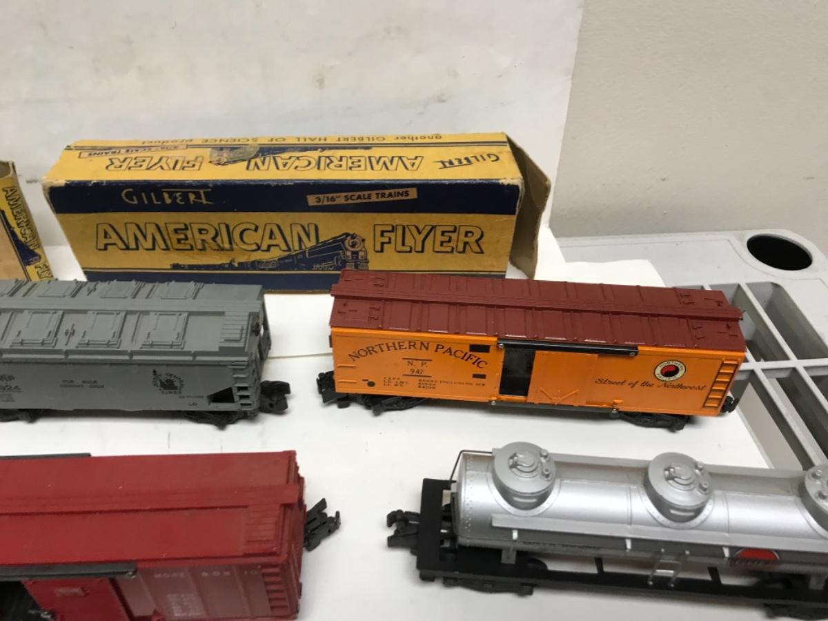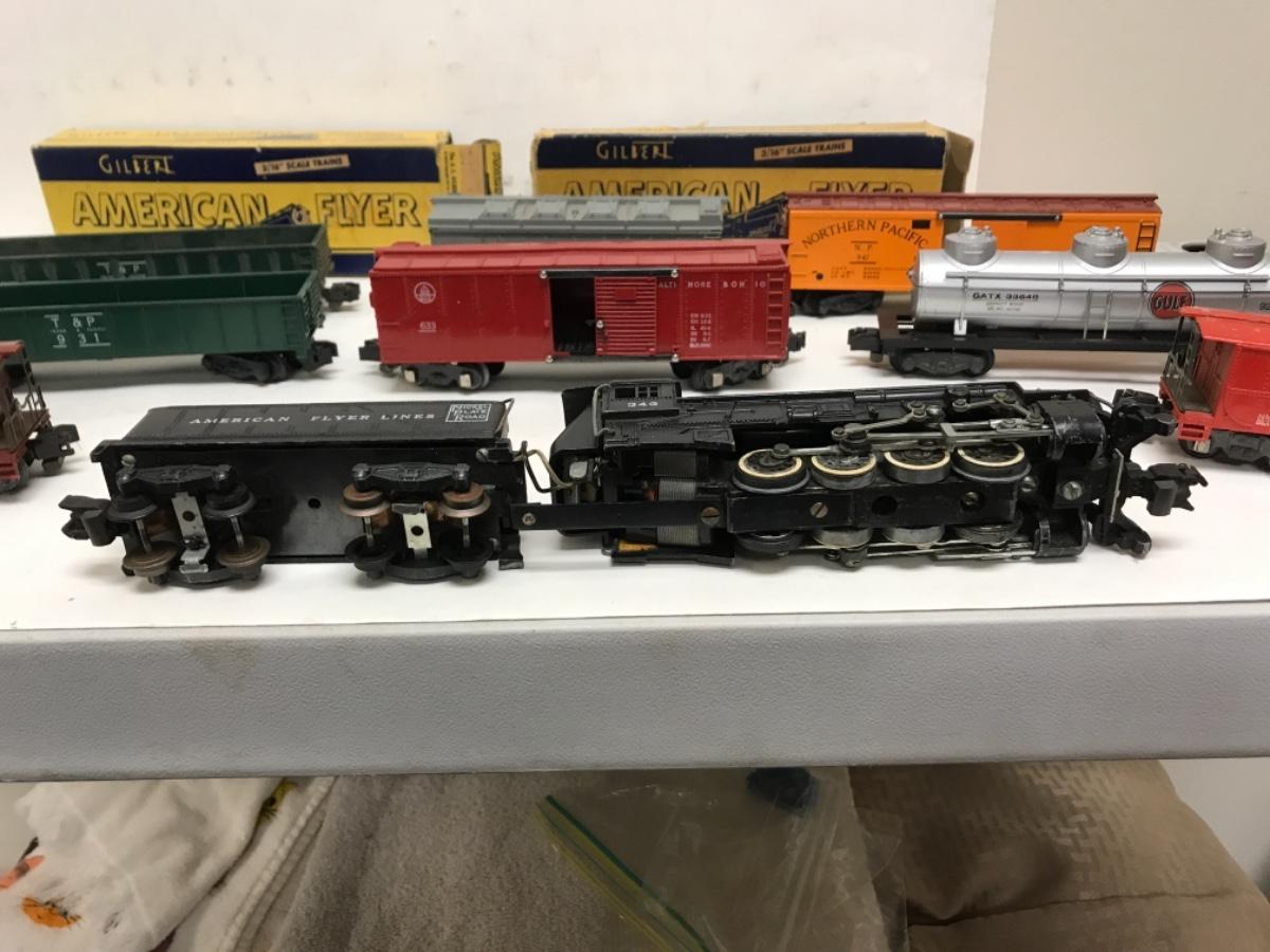 S Gauge American Flyer Freight consist-steam locomotive, tender and 8 cars 1950's
