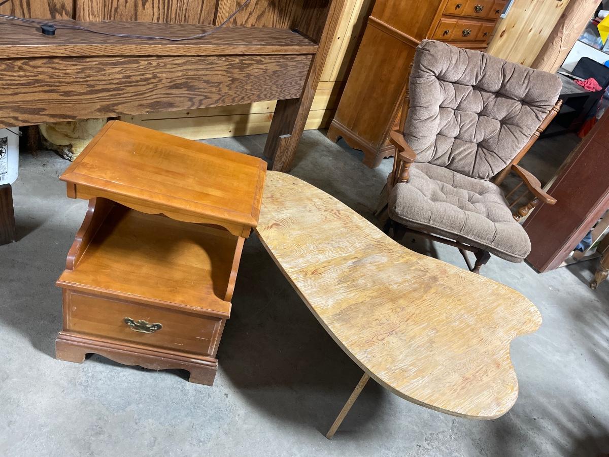 S10 End table, abstract coffee table and padded chair