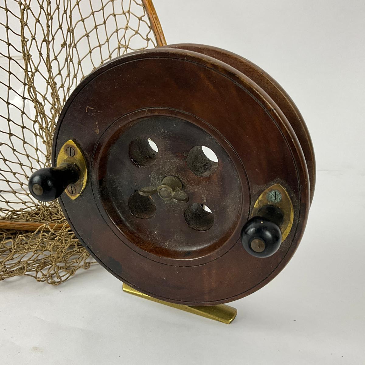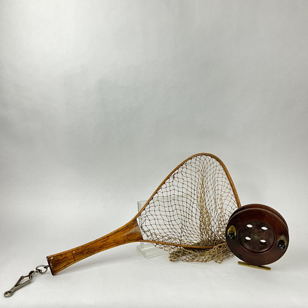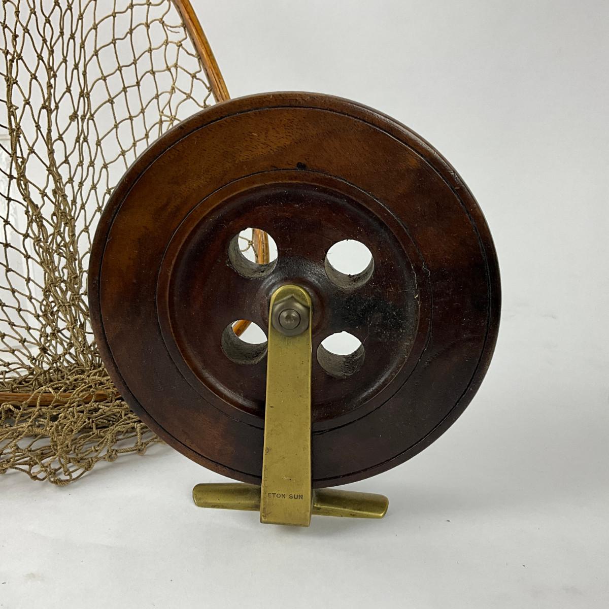 S153 Antique Fishing Net And Eton Son Wooden Fishing Reel