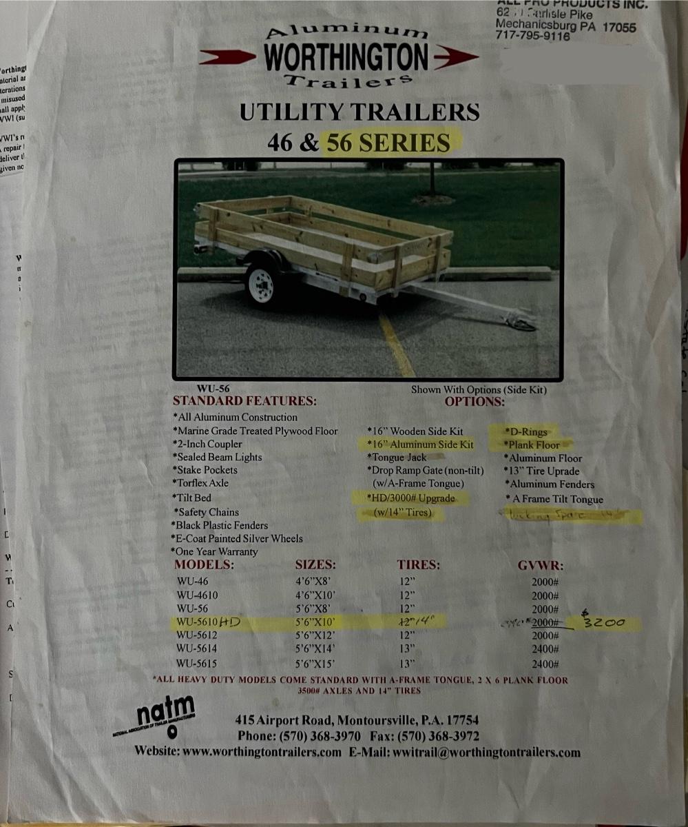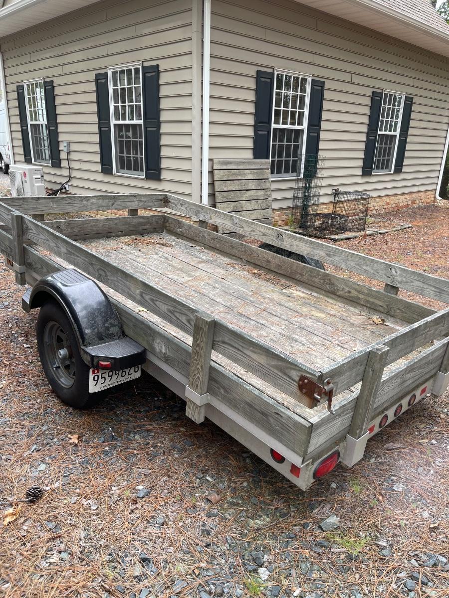 Worthington Flatbed Open Trailer w/Spare Tire & Complete Roadside Emergency Toolbox. Date of manufacture 2002. Trailer is in great shape for its age. Well maintained.