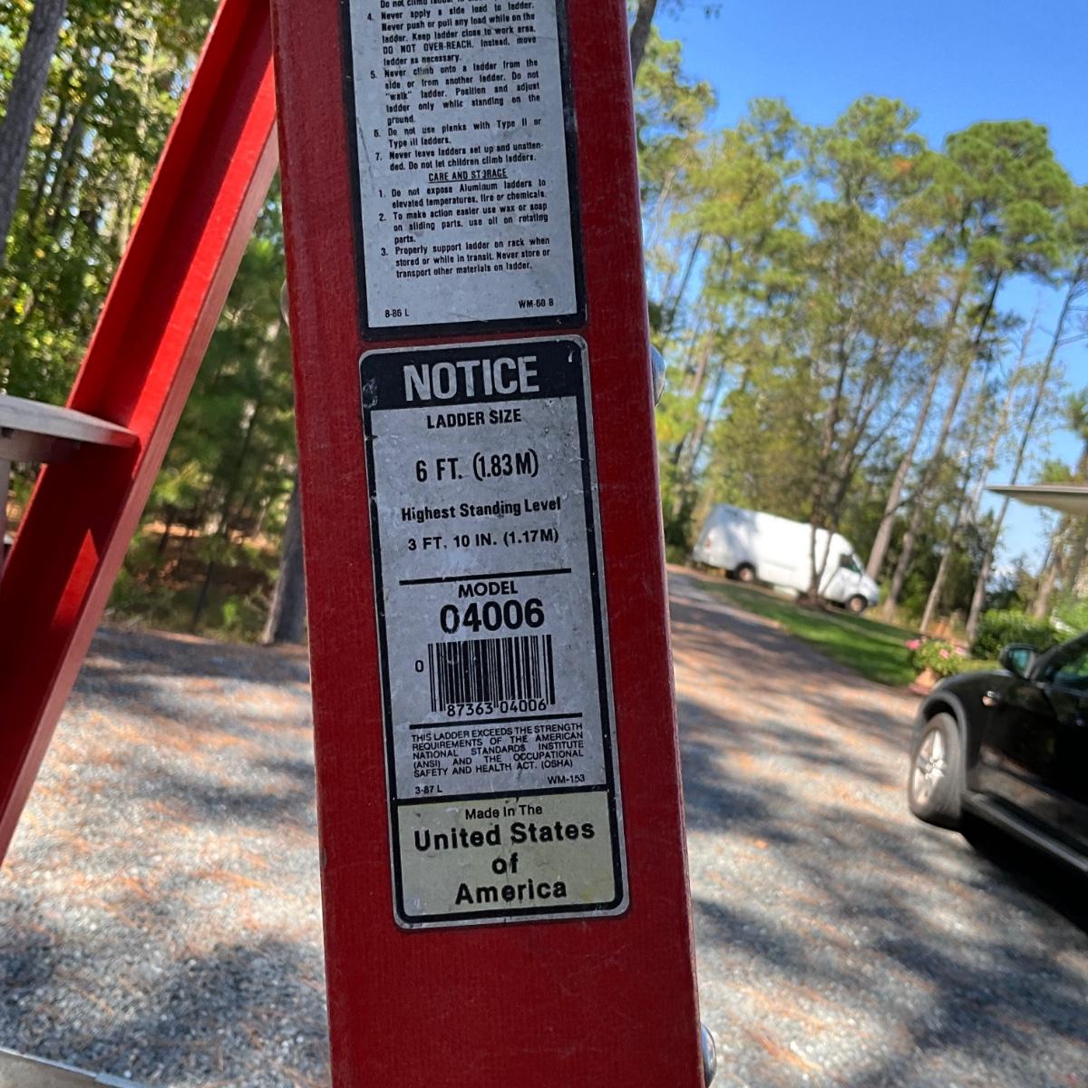 S1642 White Metal Fiberglass 6' Ladder