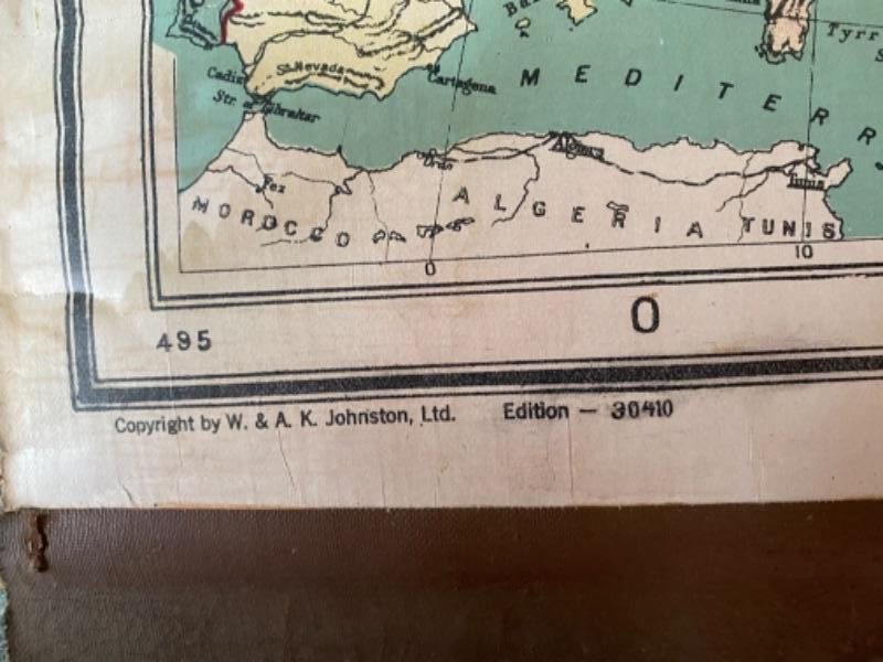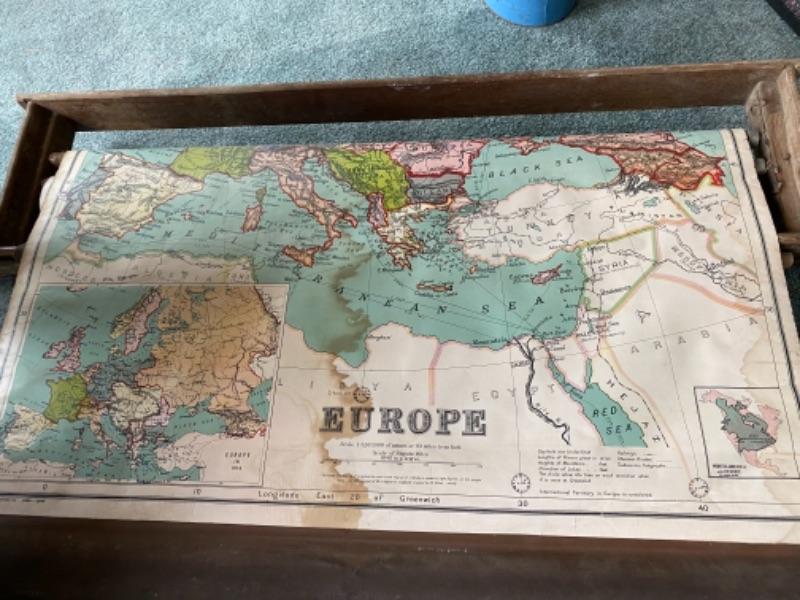S166 Antique Wooden Map Rack with Antique School House Maps of Europe