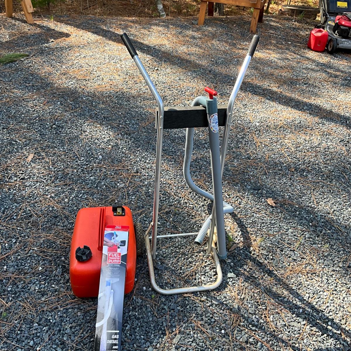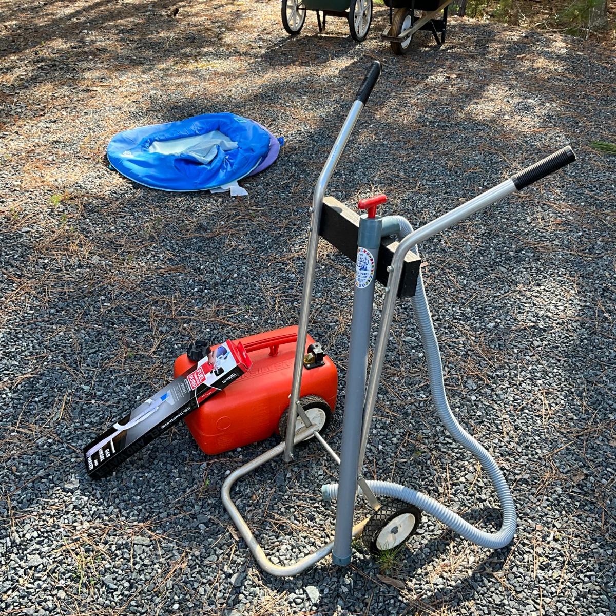 S1679 Boat Motor Dolly, Thirsty Mate Bulge Pump, Battery Power Fuel Transfer