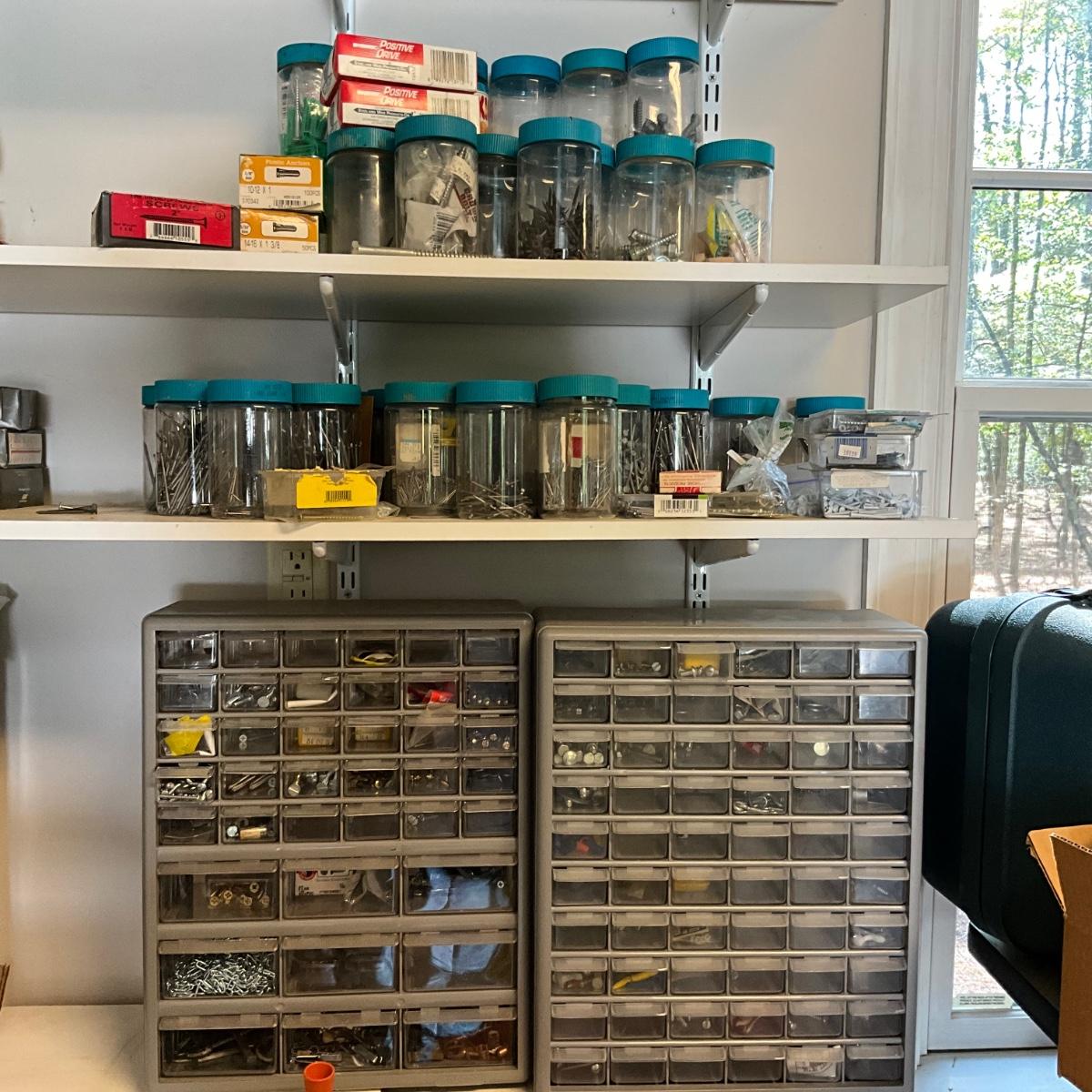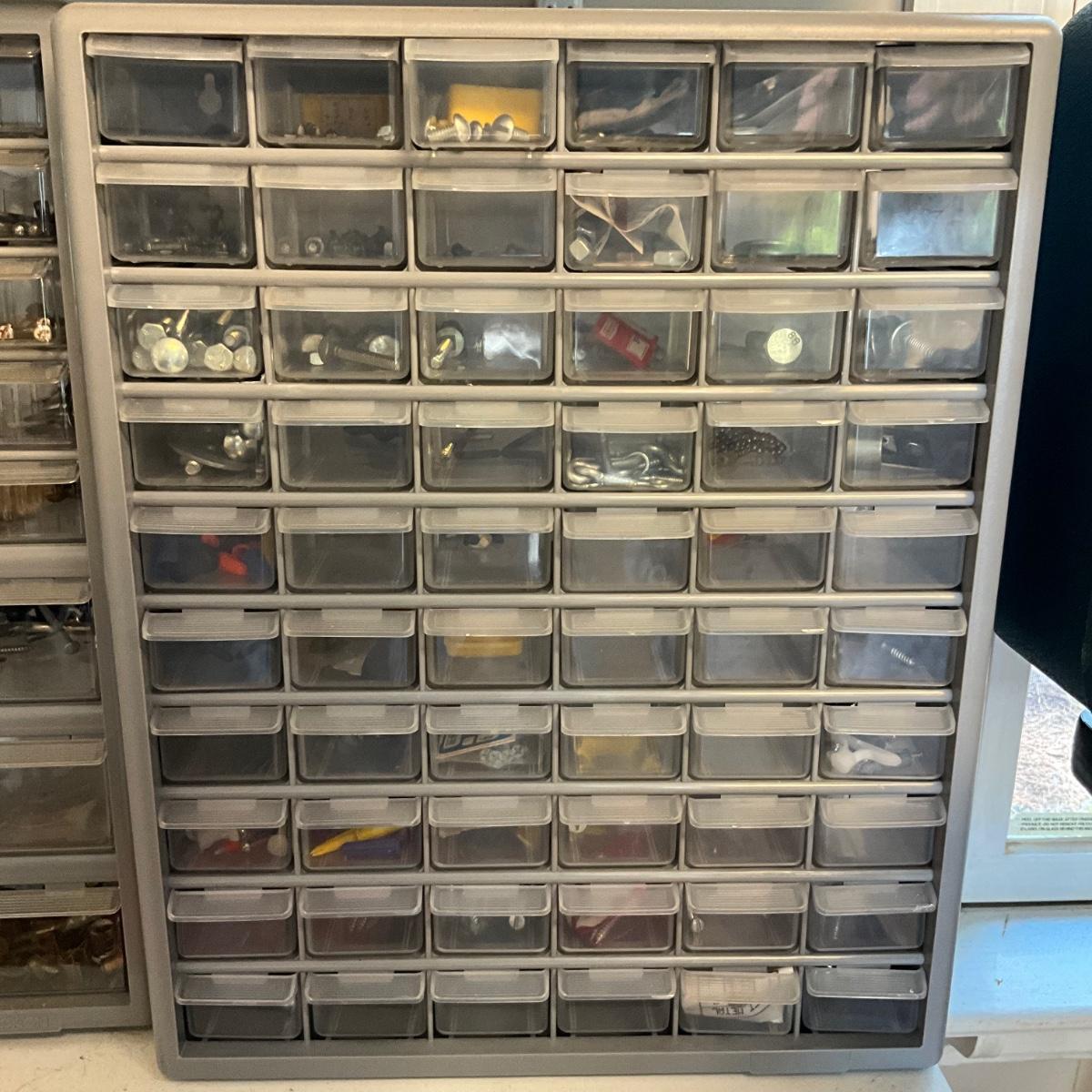 S1717 Two Drawer Organizers with Box of Empty Plastic Jars