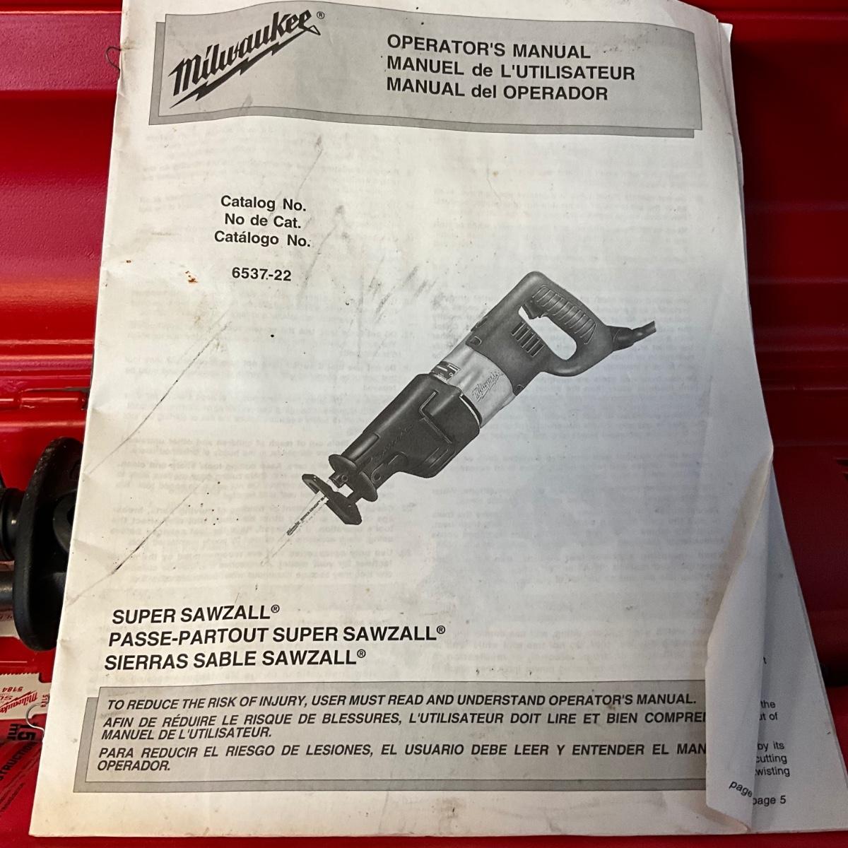 S1732 Milwaukee Sawzall with Quik-Lok and extra Blades