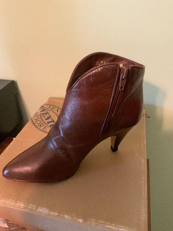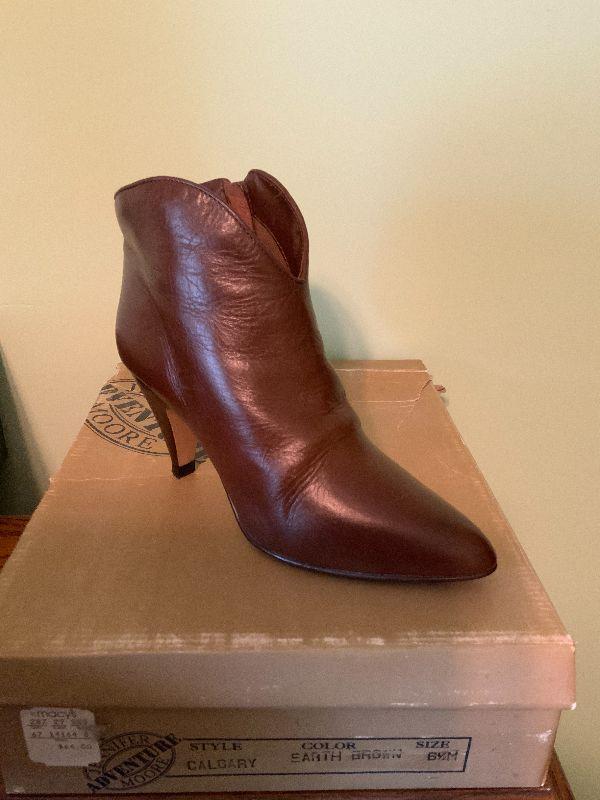 S18: Women's Brown Leather Bootie with heel size 6 1/2.