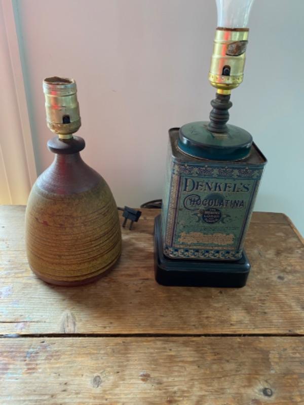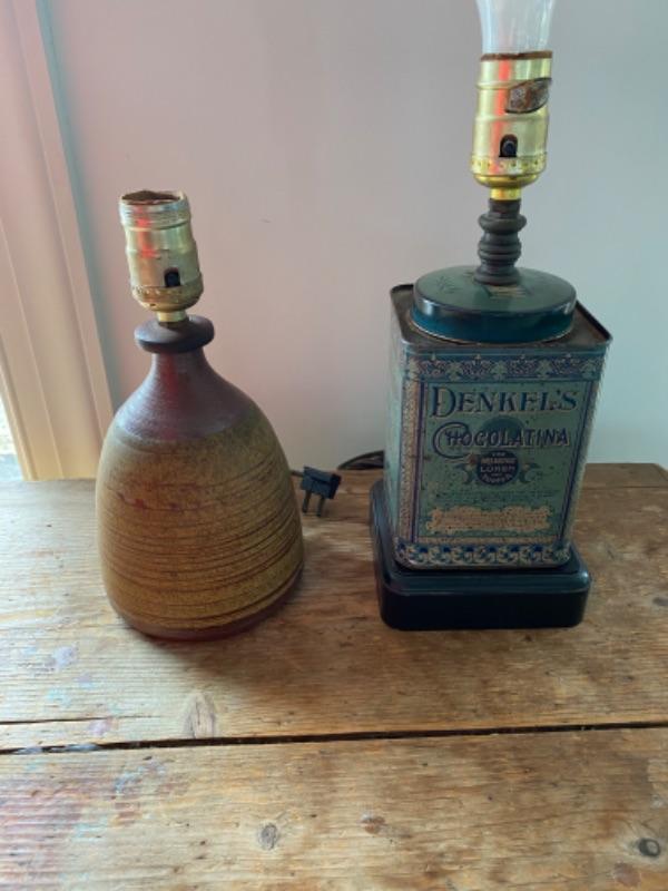 Tin lamp measures 14.5” pottery lamp measures 9.5”
